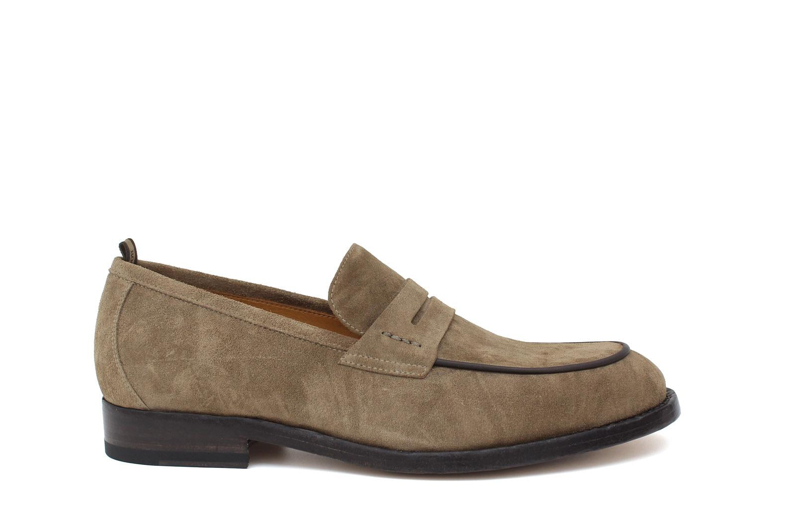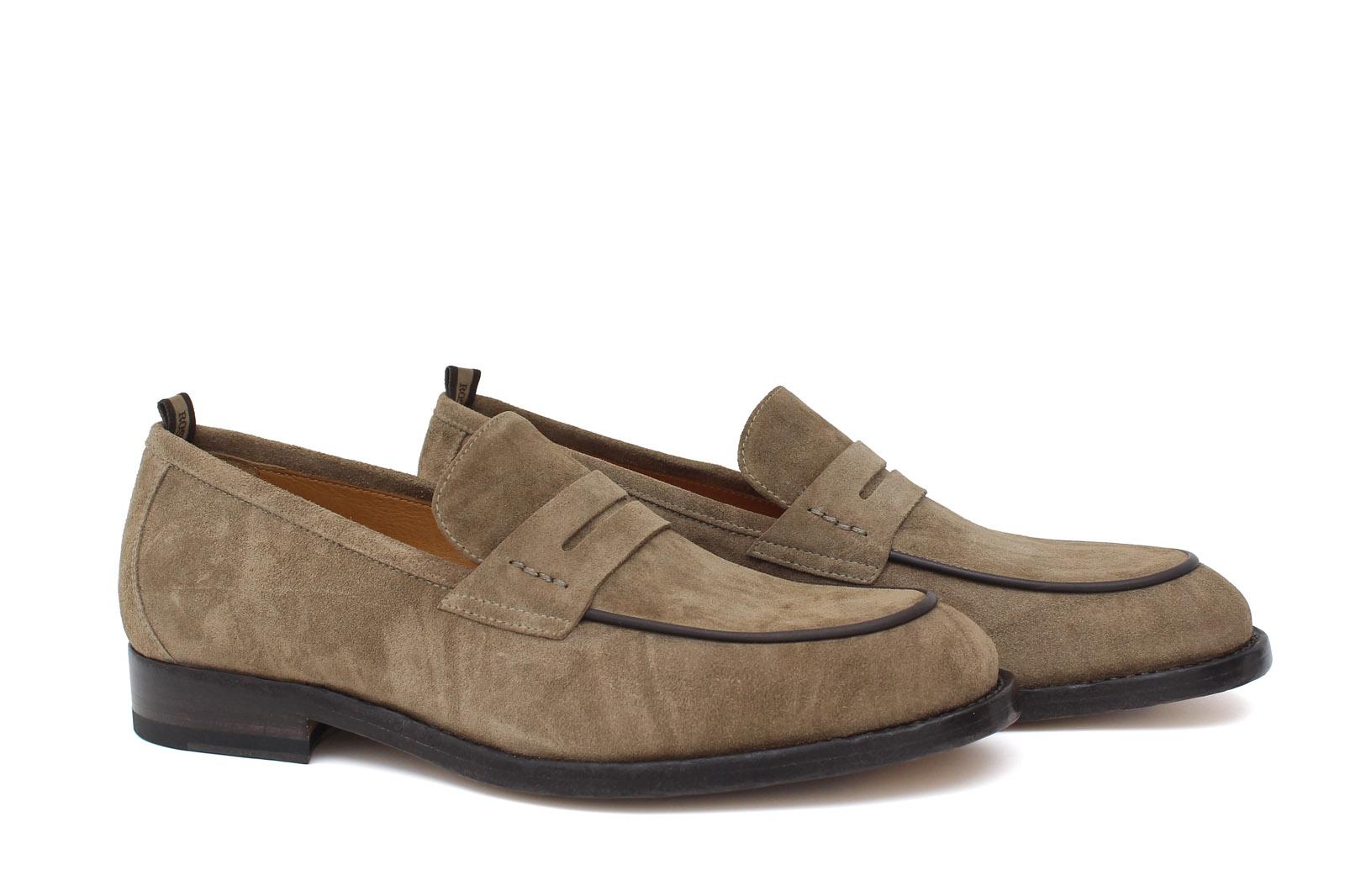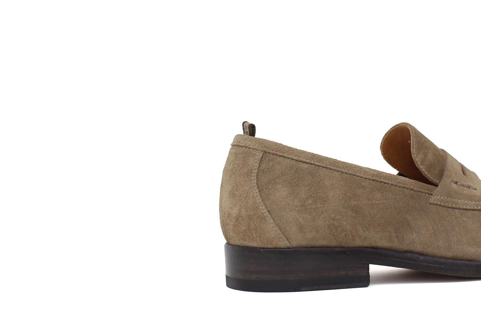 Washed suede moccasin recommended for an informal outfit with attention to the smallest details