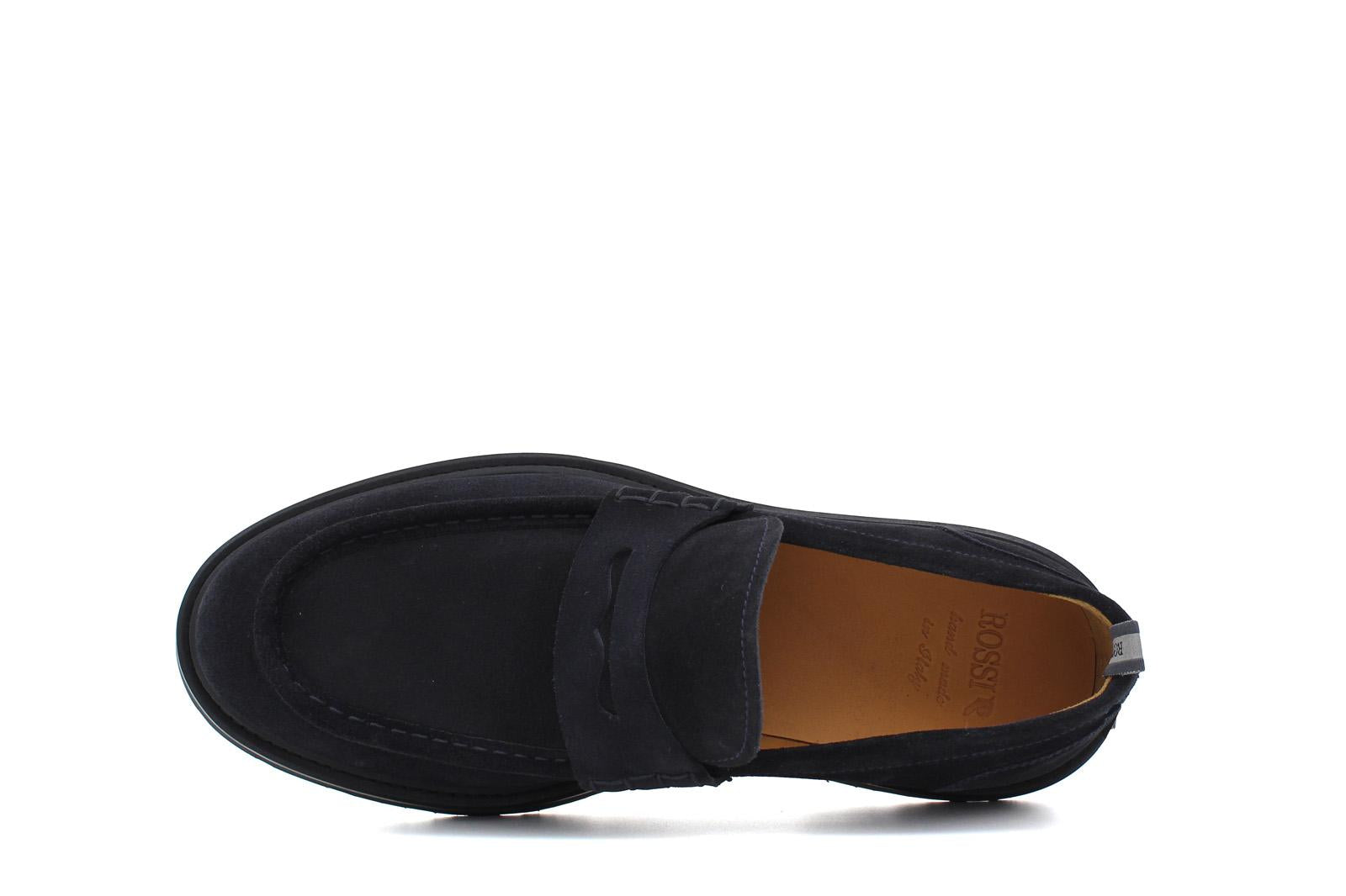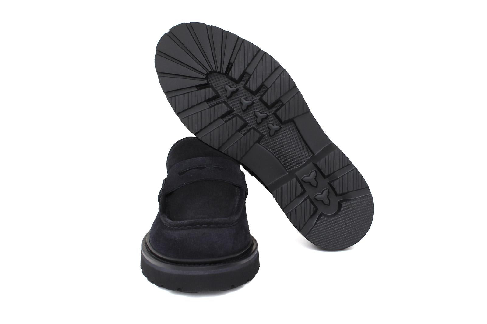 Engineer-style moccasin in blue suede and lightweight rubber sole