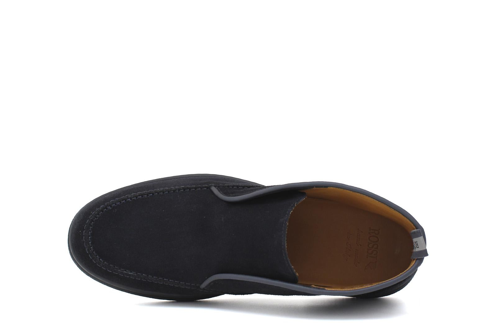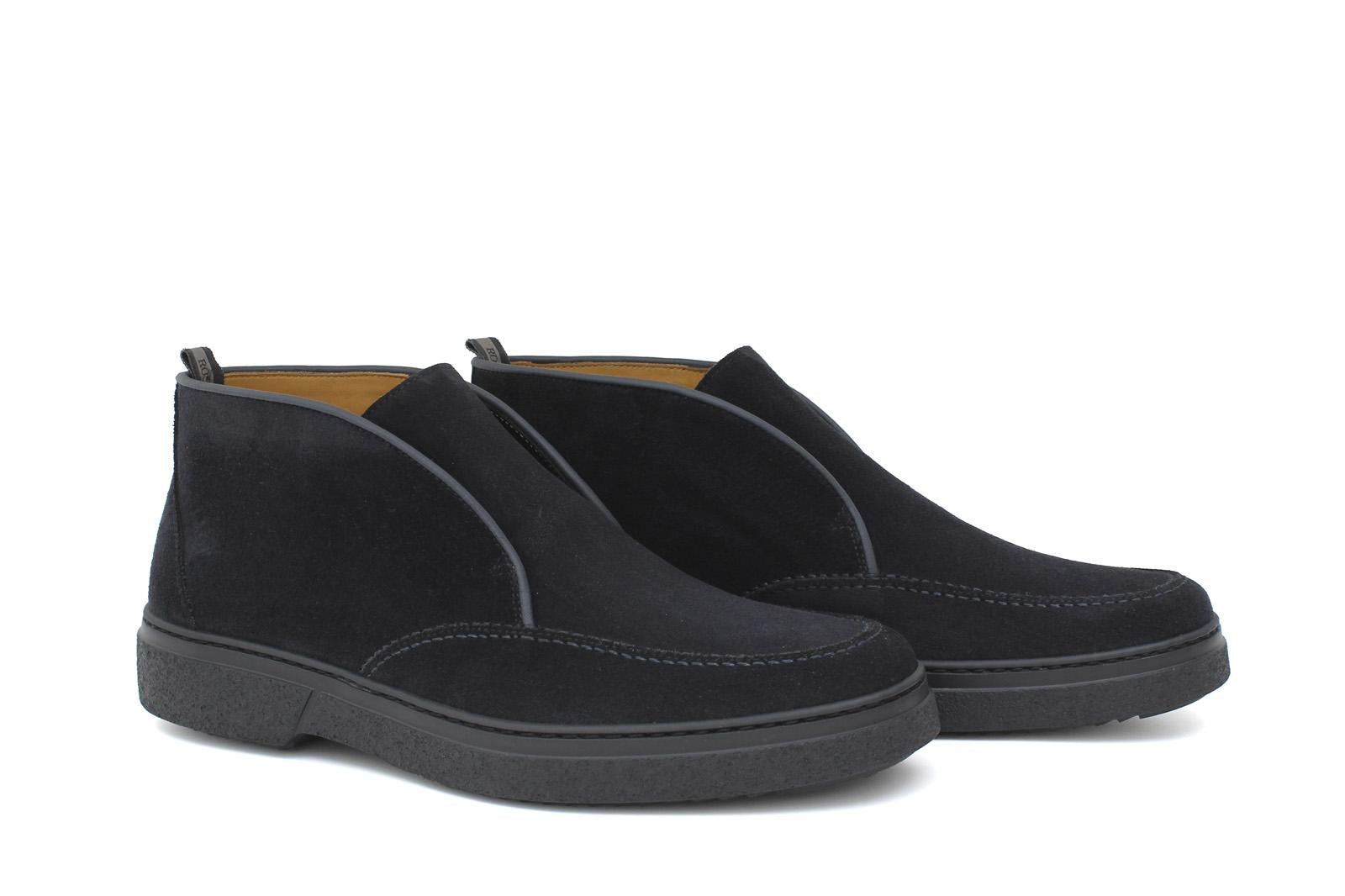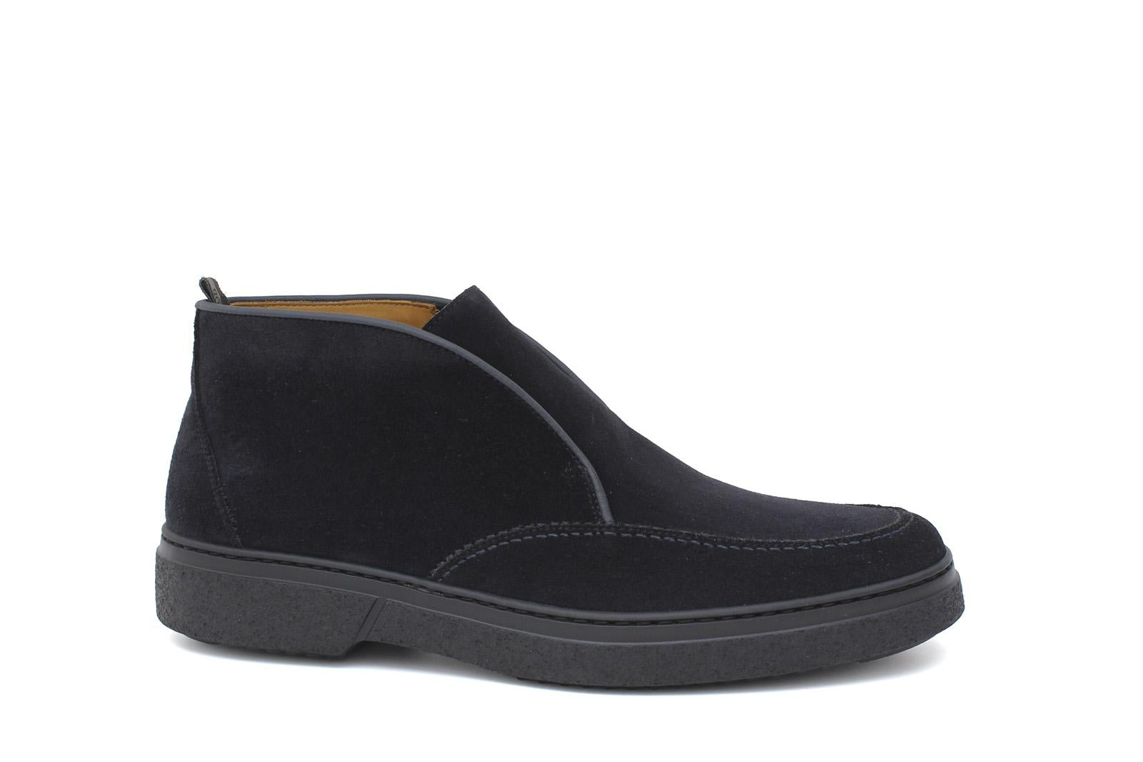Ankle boot with central elastic in blue greased suede and lightweight rubber sole
