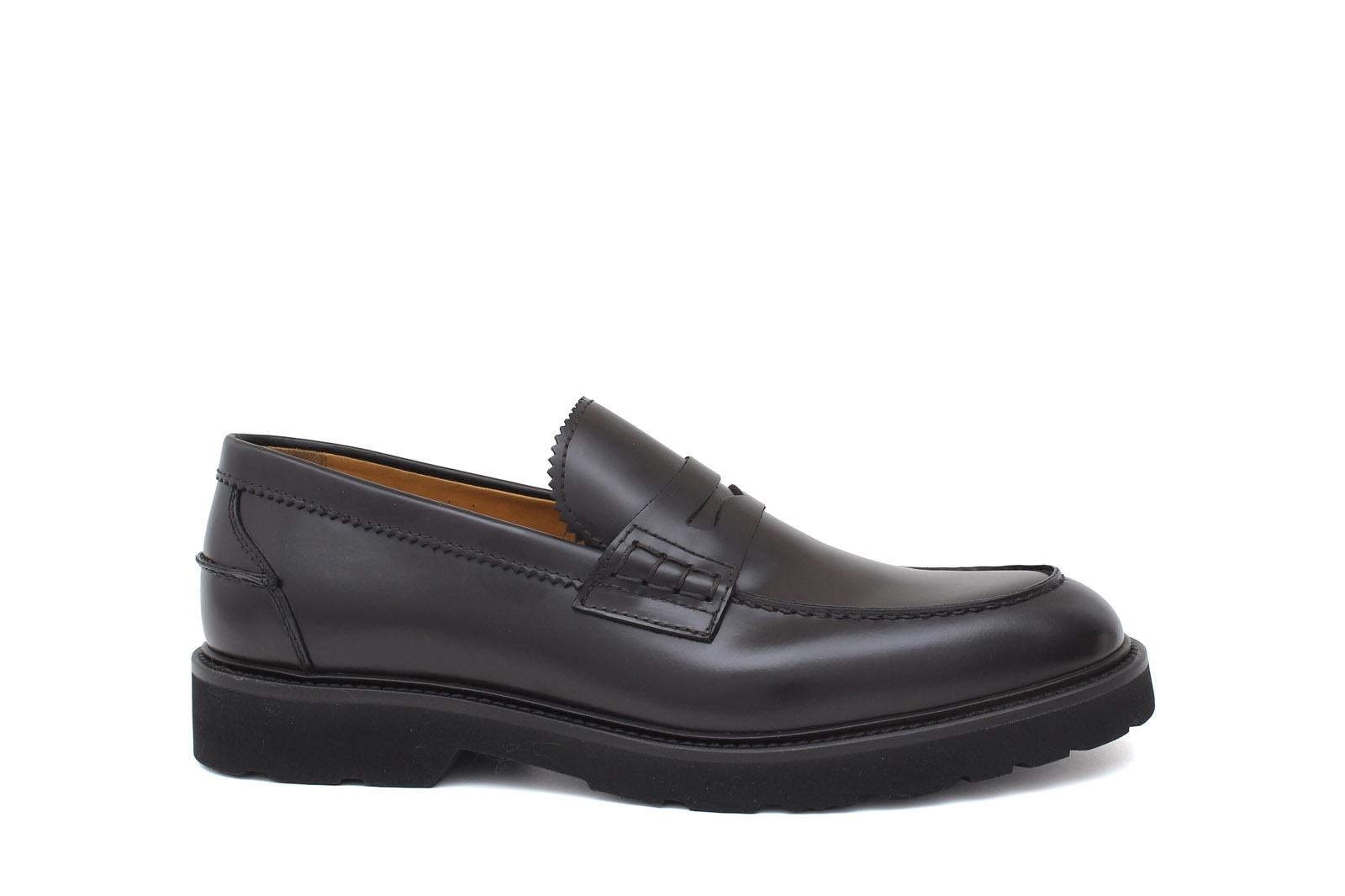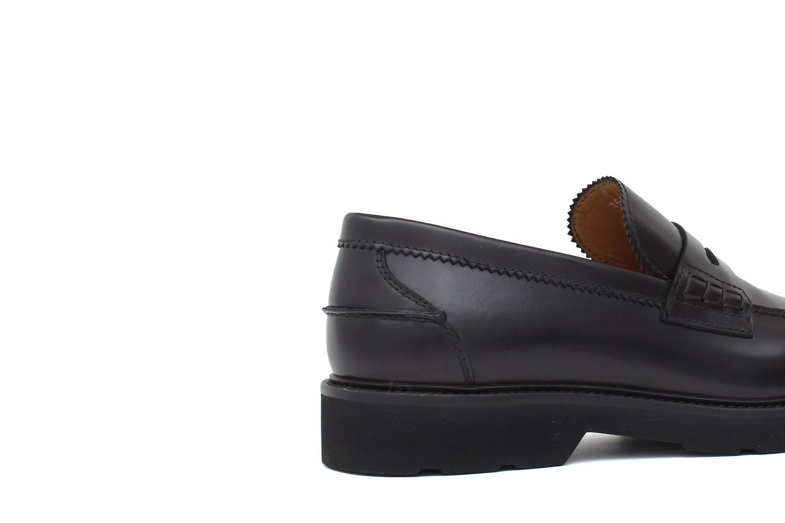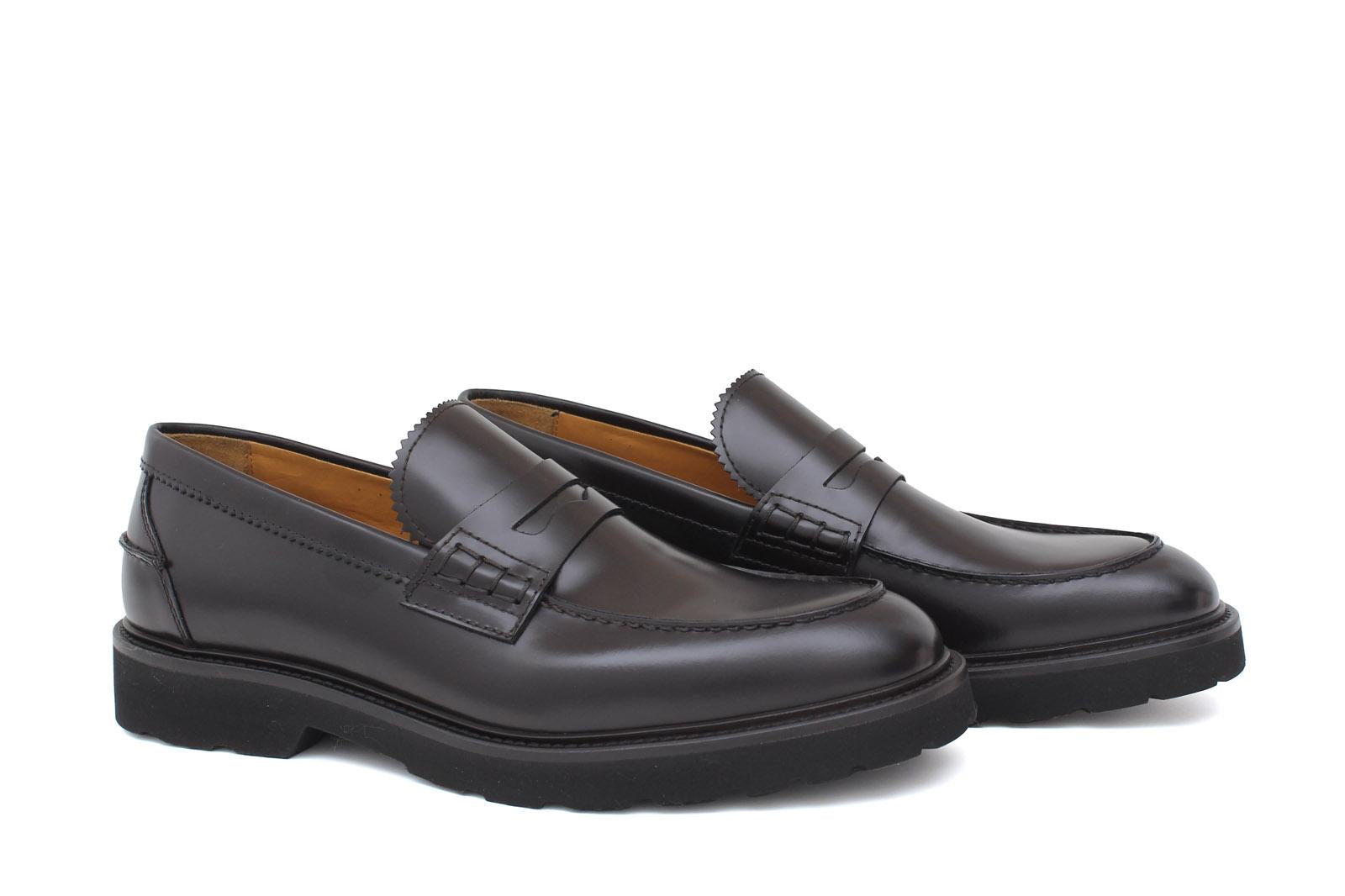College moccasin in brushed calfskin dark brown with light rubber sole
