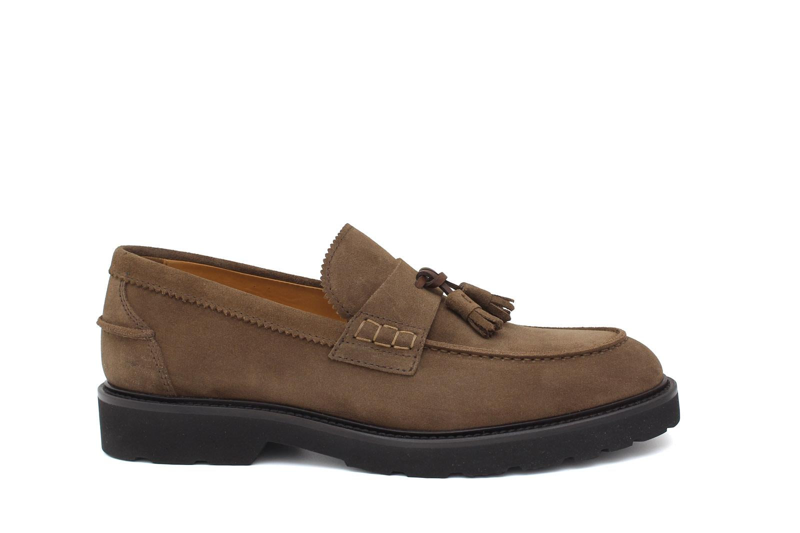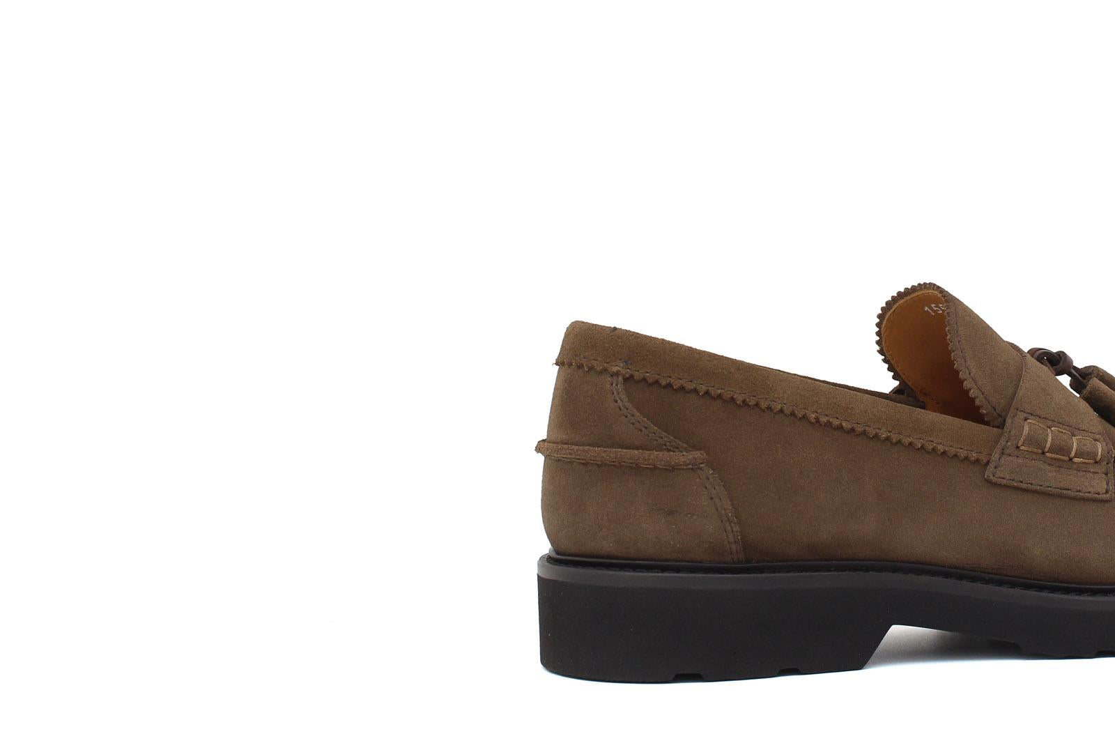 Moccasin with earth-colored greased suede mappine and light rubber sole