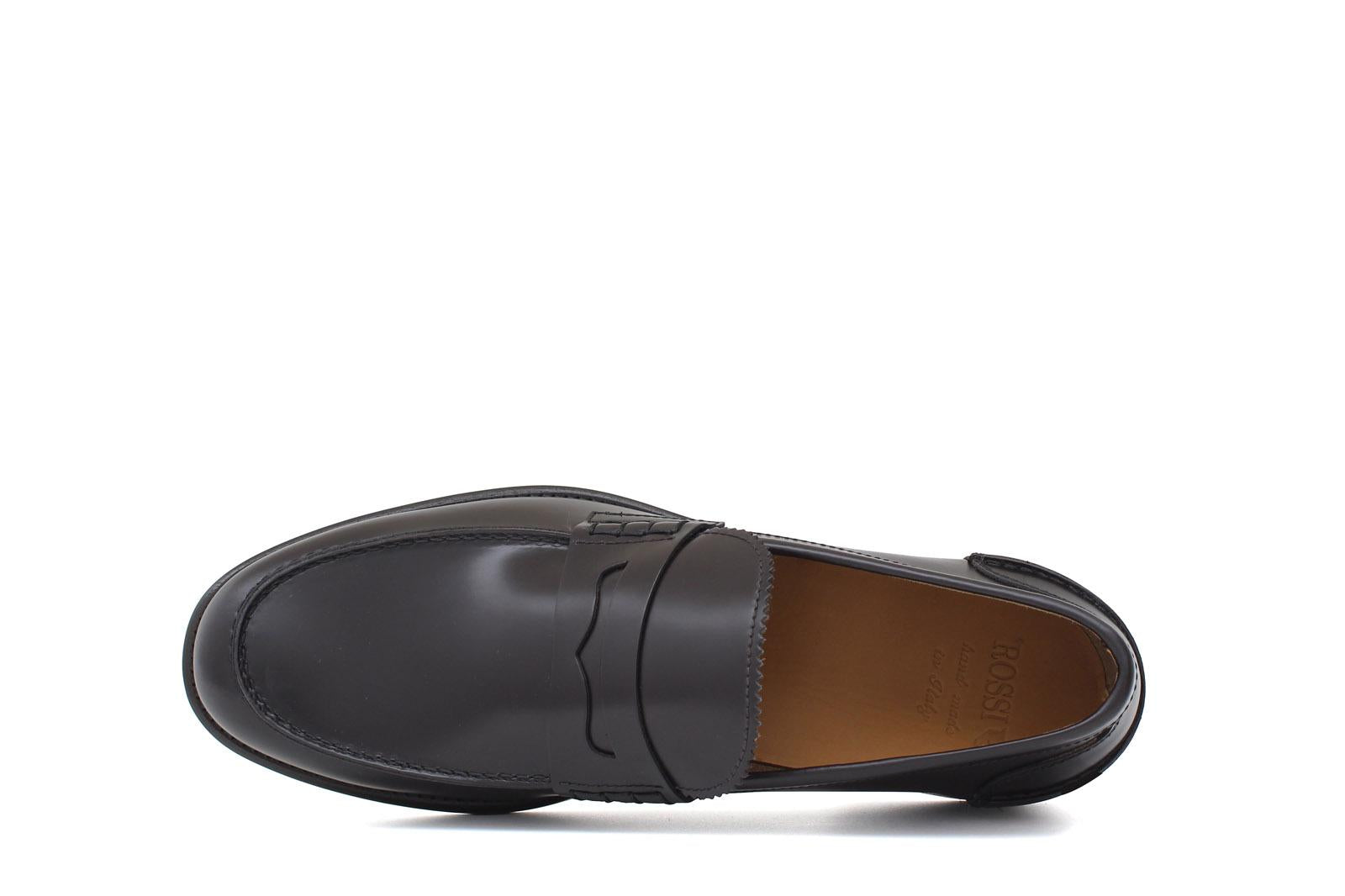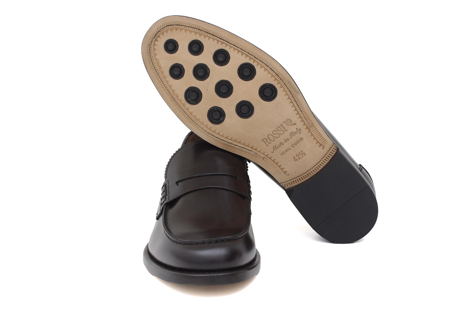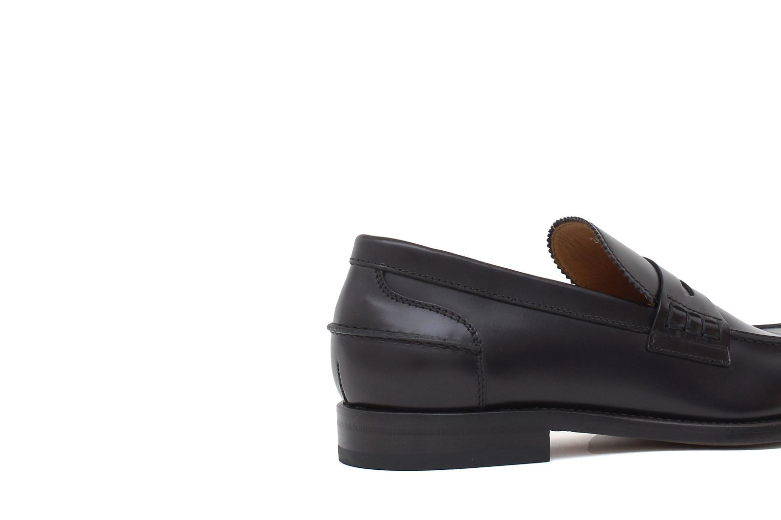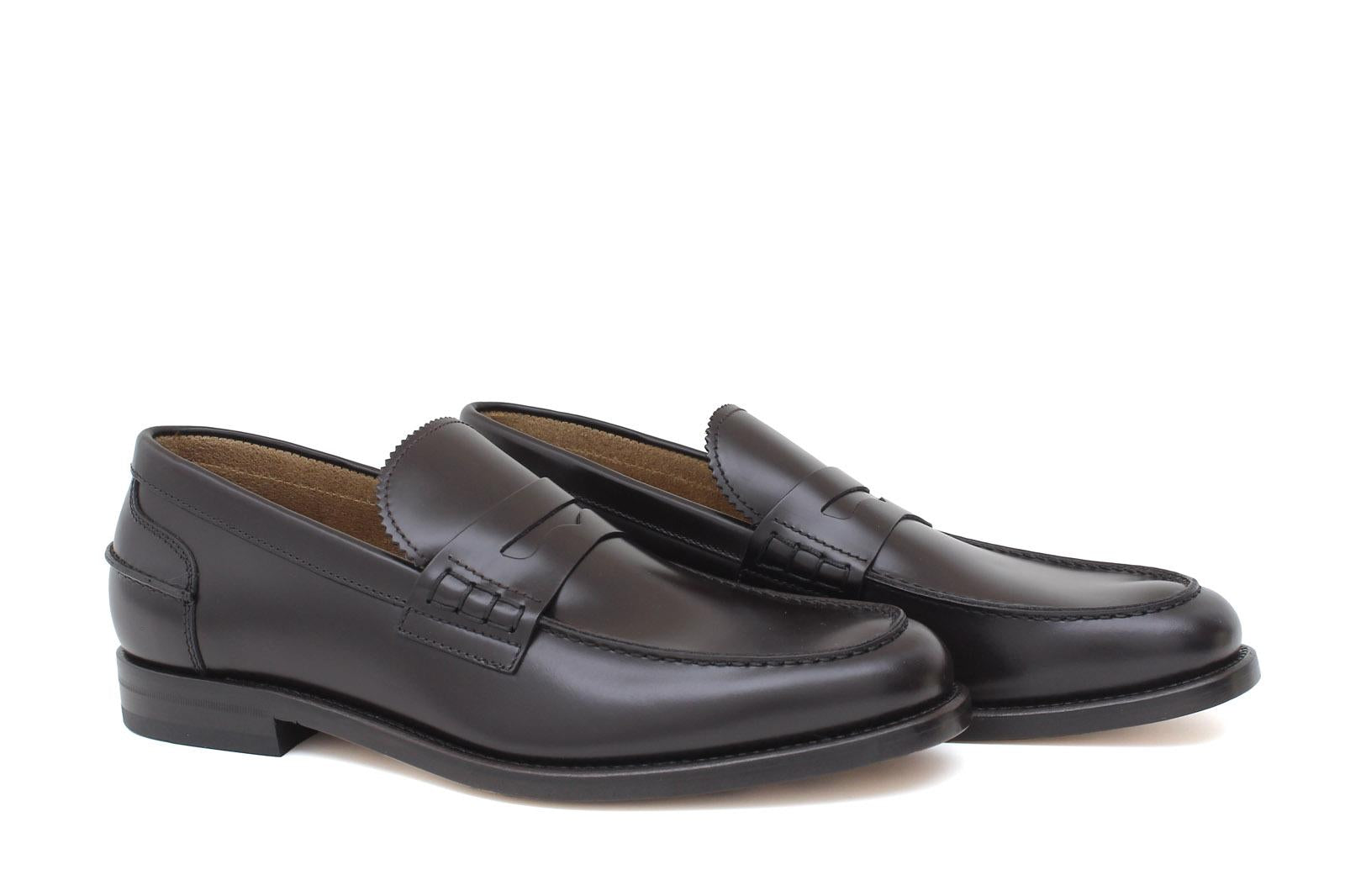 Unlined college in brushed dark brown calfskin and non-slip leather sole with Blake stitching