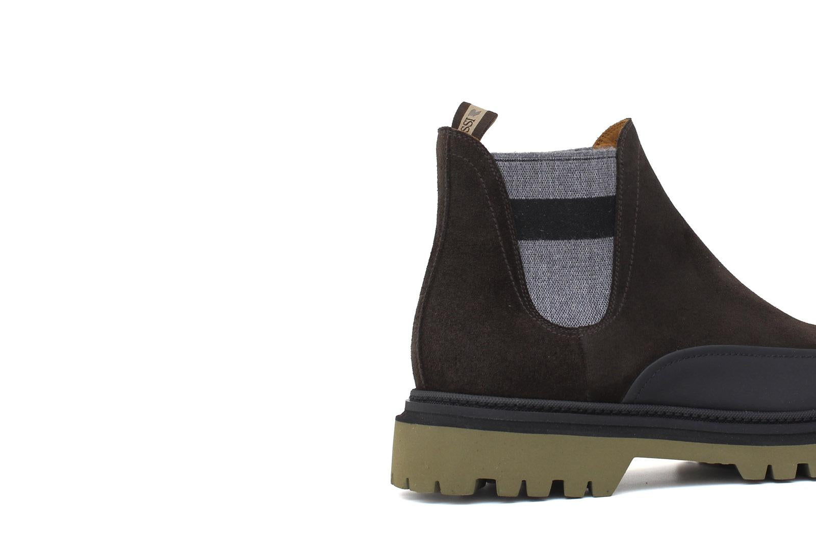 Beatles with two-tone elastic, dark brown greased suede upper and rubber insert with light rubber sole