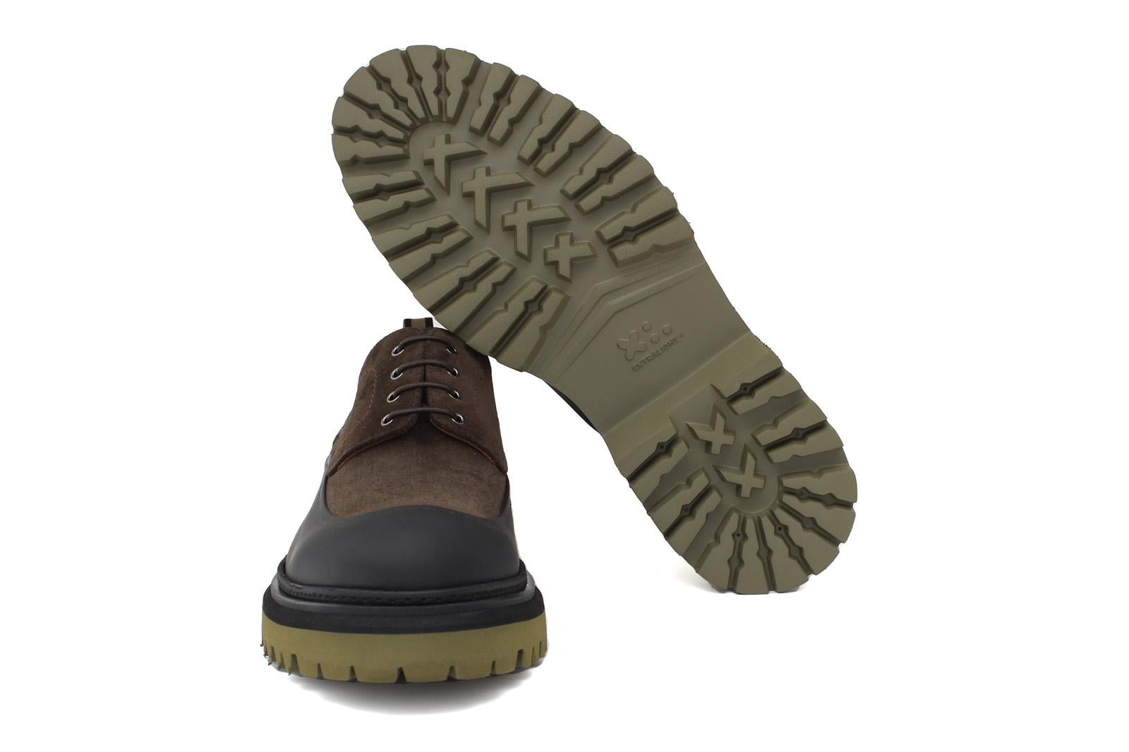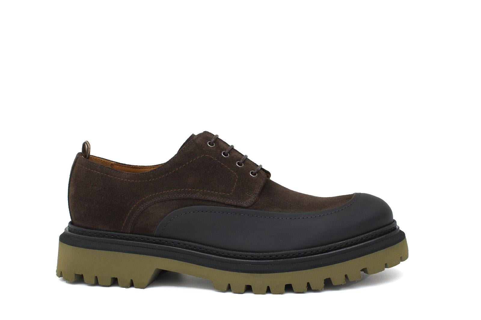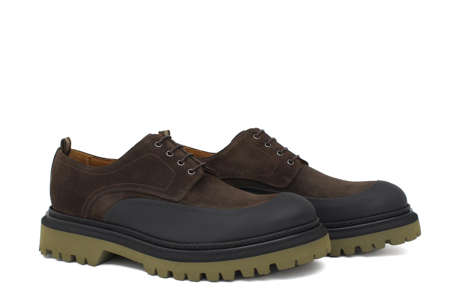 Derby in dark brown greased suede, rubber insert with light rubber sole