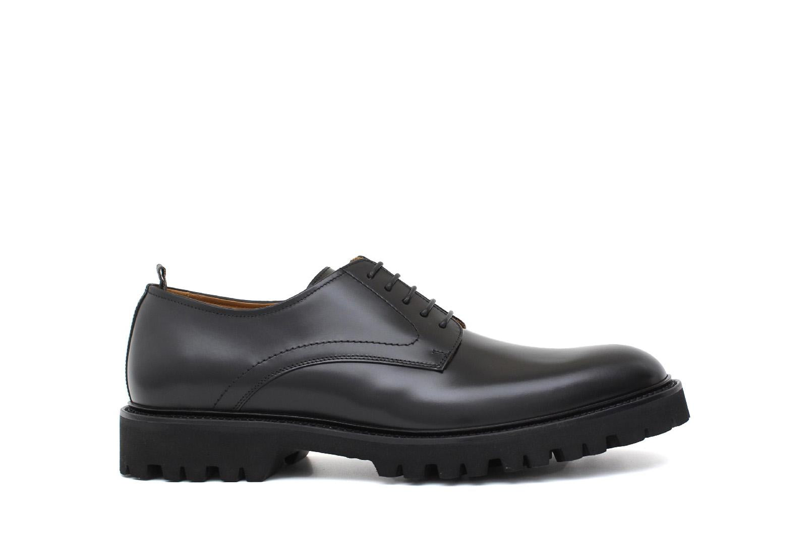 Smooth Derby in black brushed calfskin with lightweight rubber sole