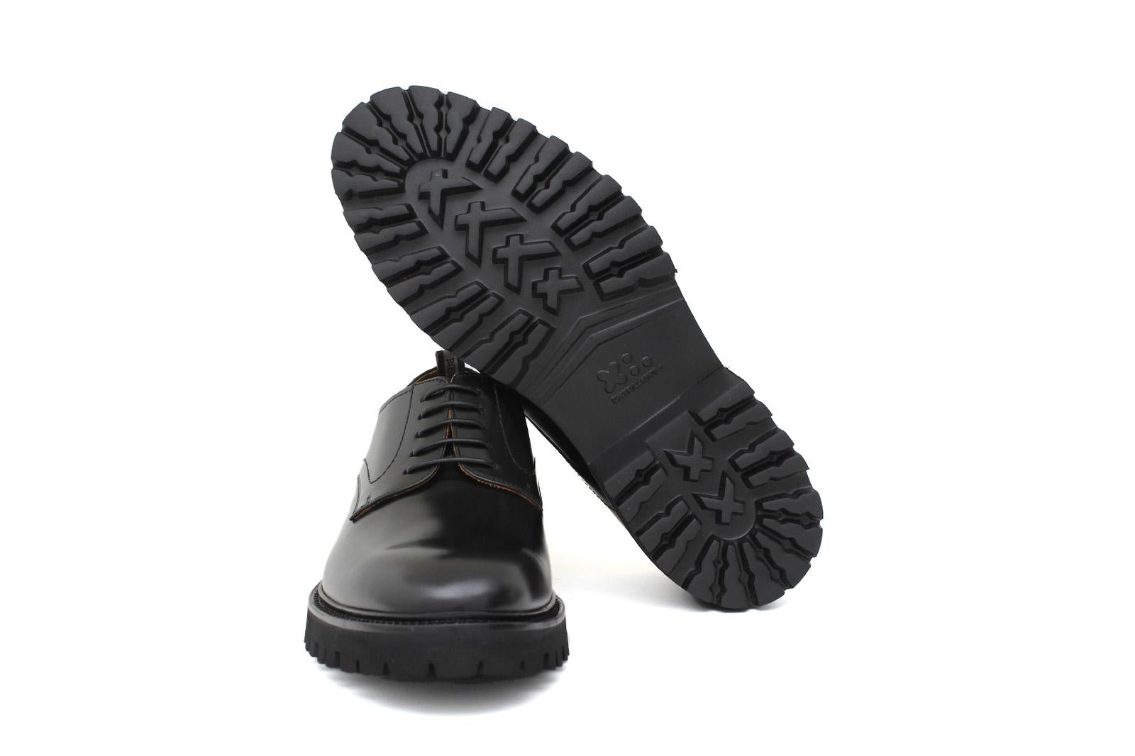 Smooth Derby in black brushed calfskin recommended for a fashionable and slightly eye-catching outfit
