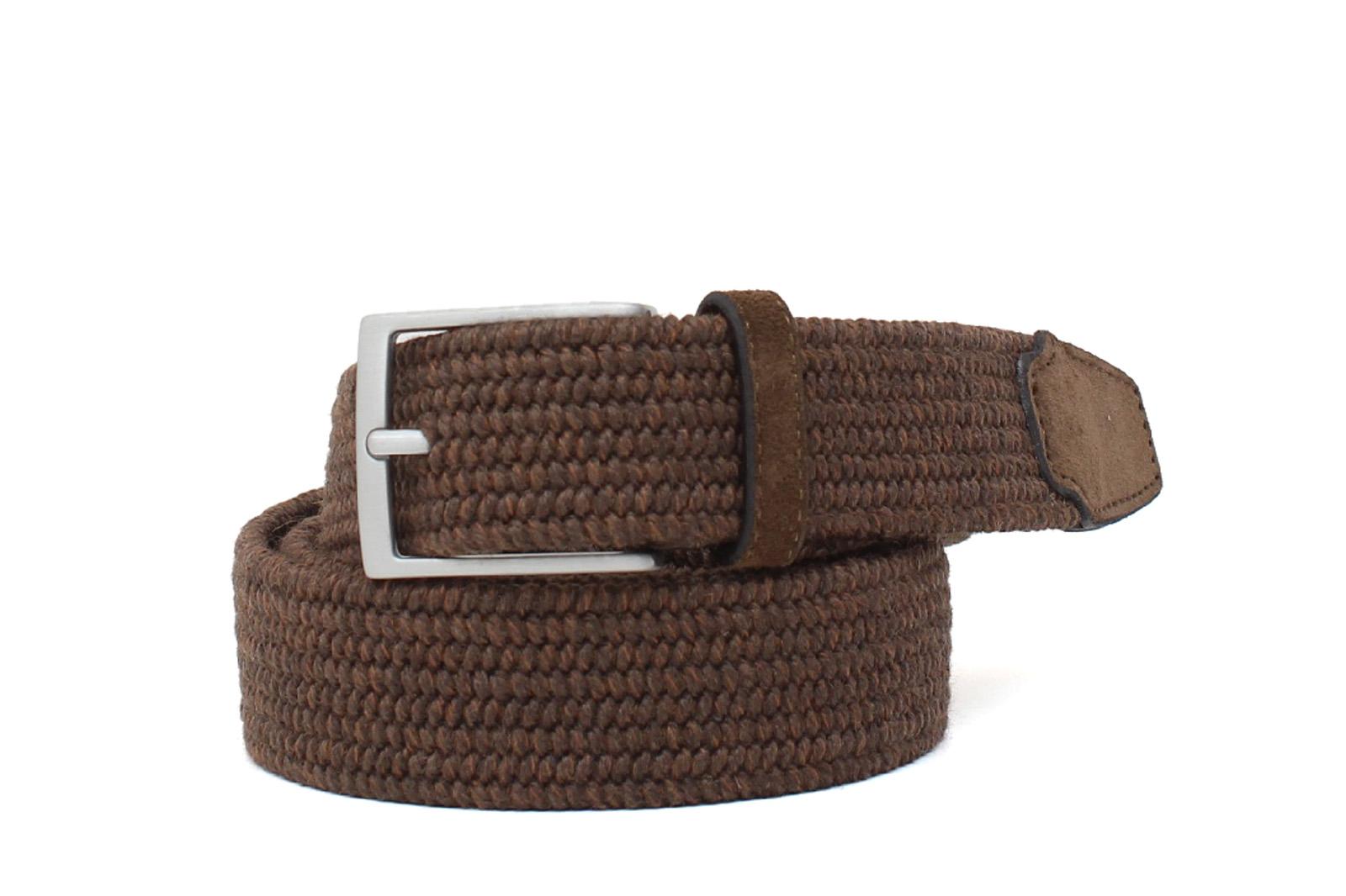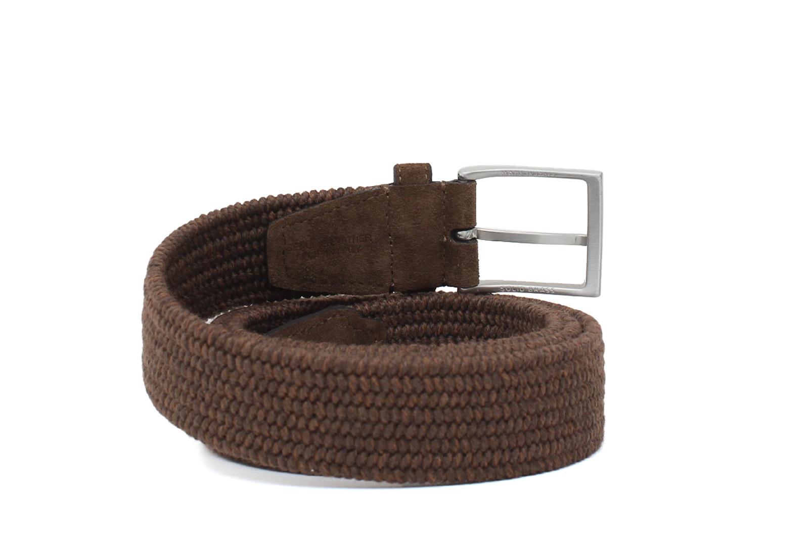 35mm belt with satin nickel buckle and brown elastic weave