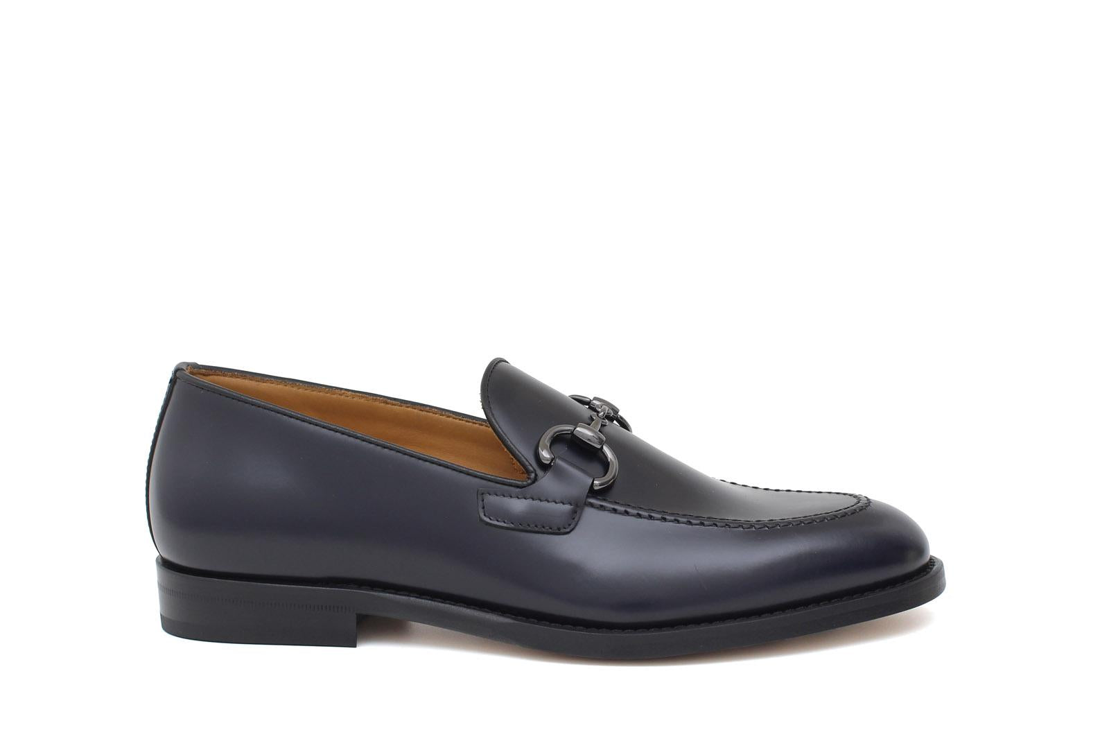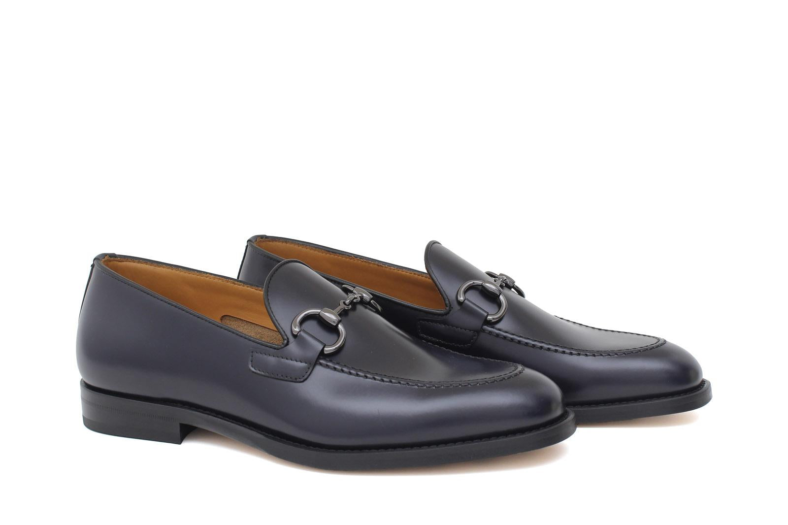 Moccasin with accessory in blue brushed calfskin recommended for a classic contemporary outfit for every occasion