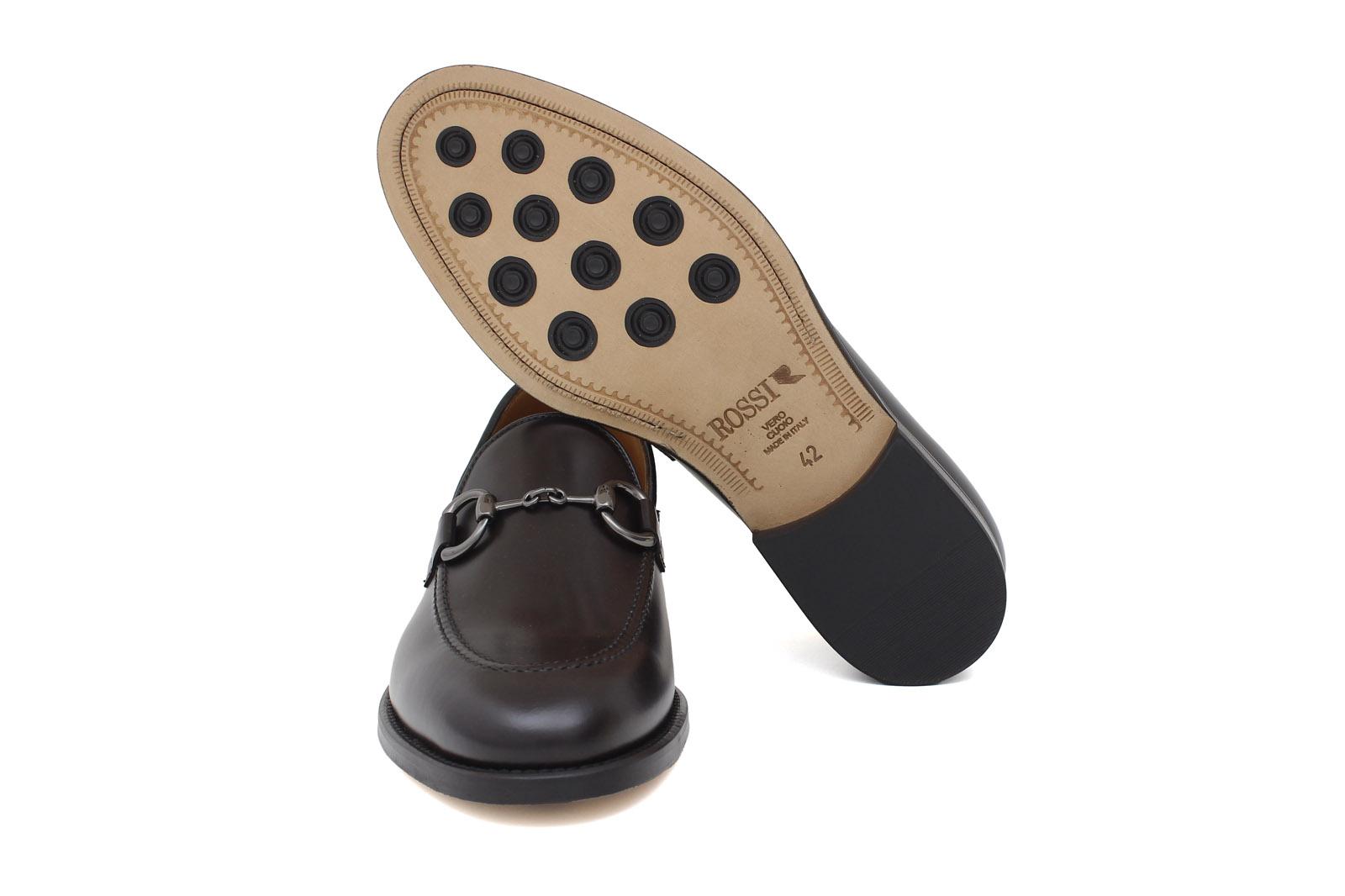 Moccasin with accessory in brushed dark brown calfskin with non-slip leather sole