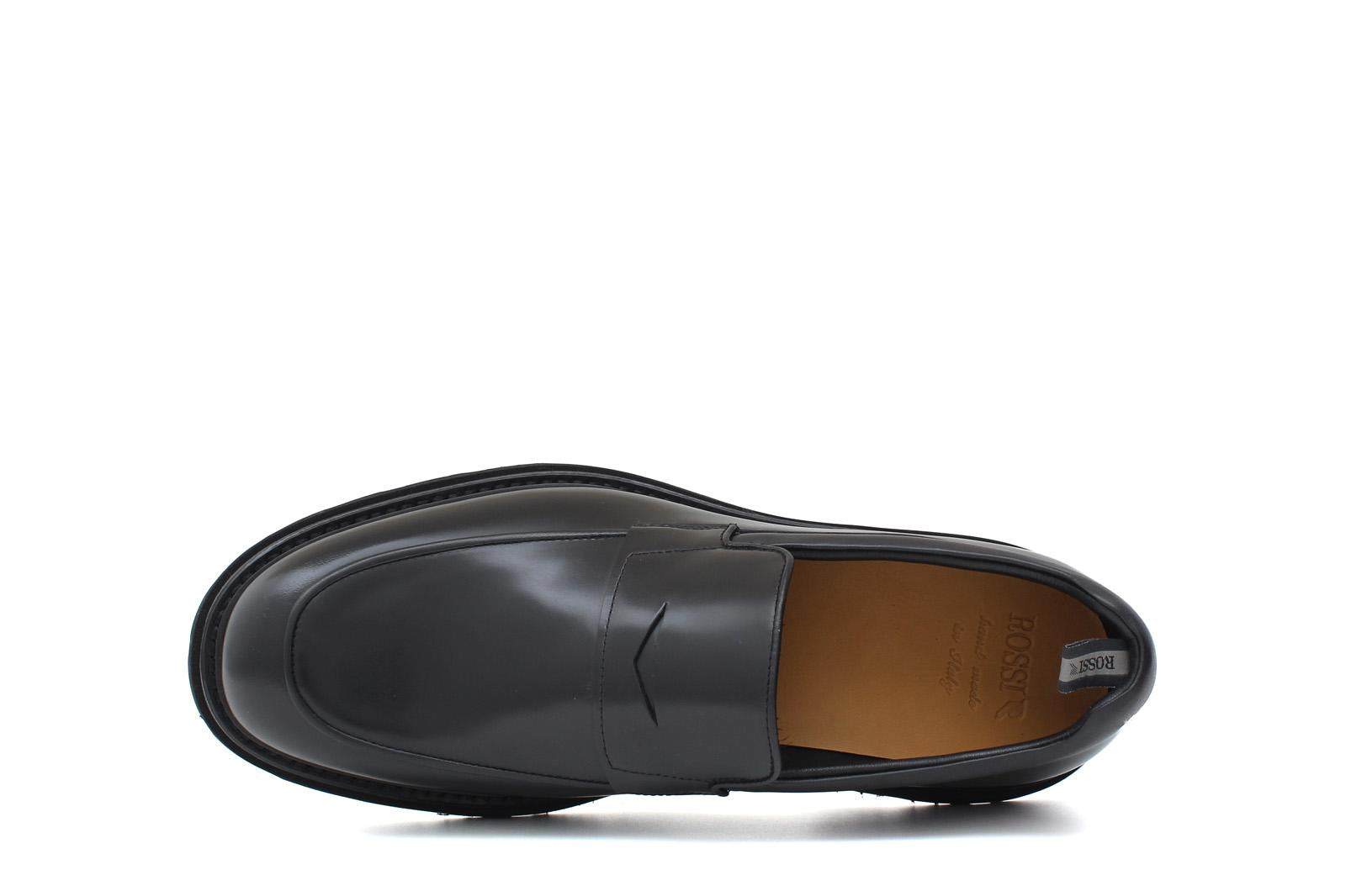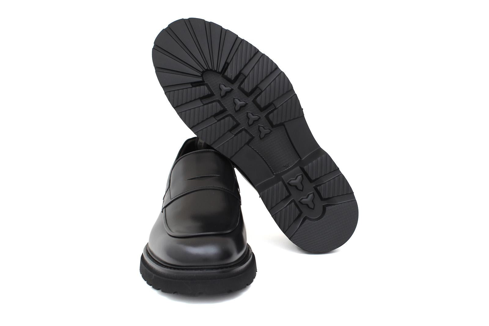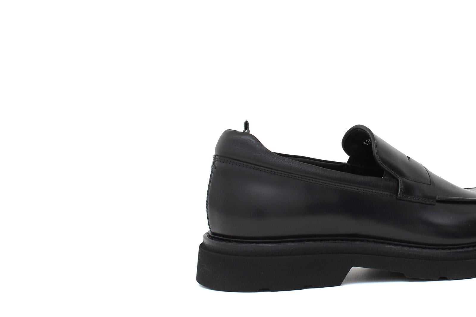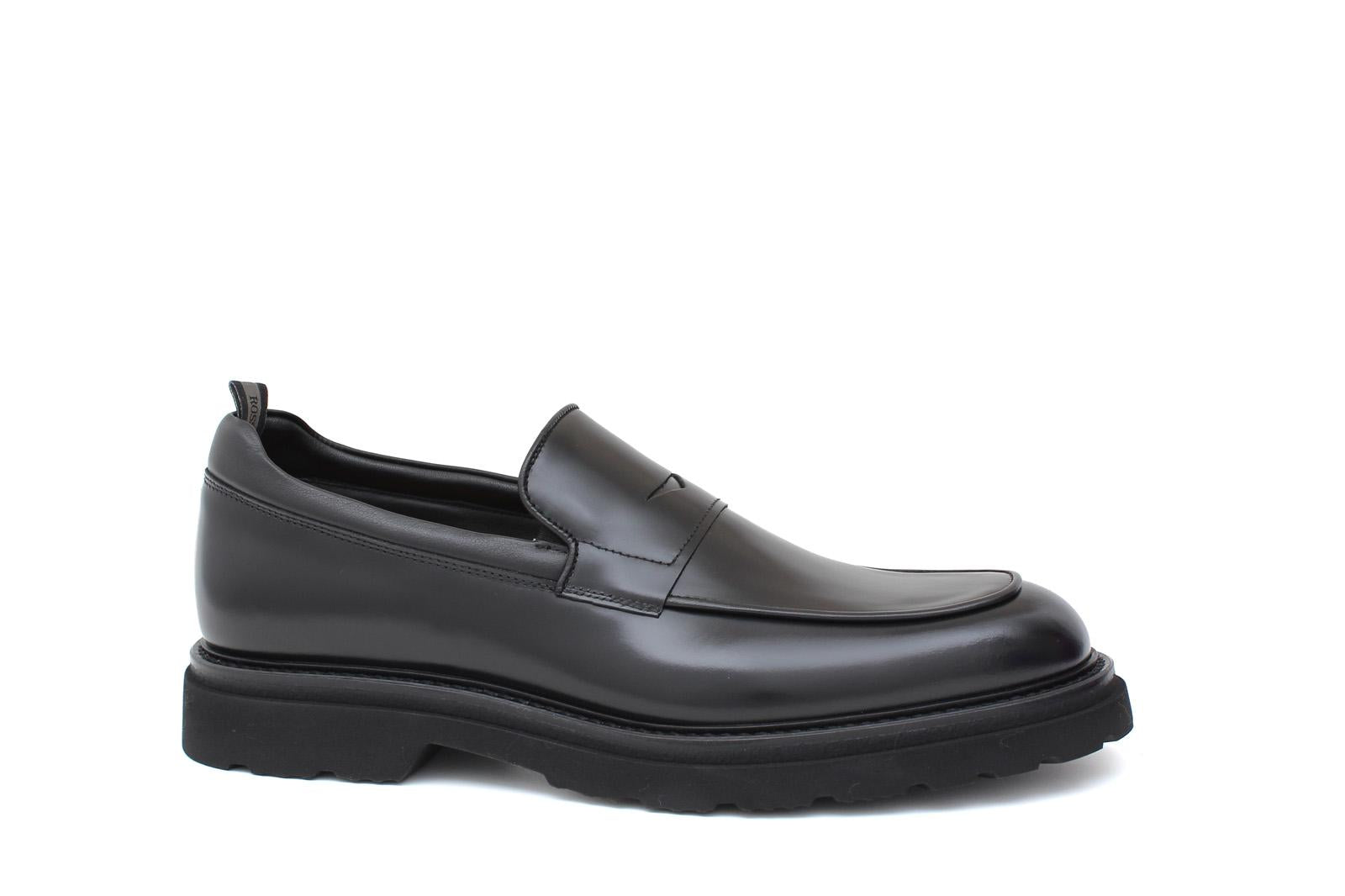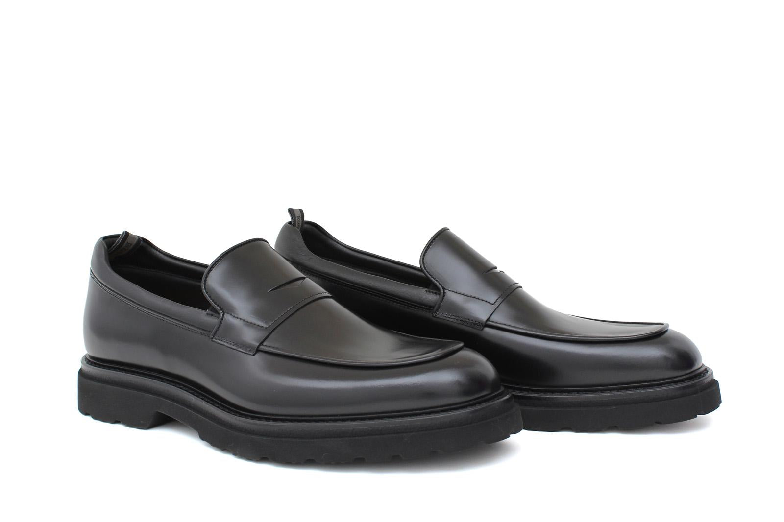 Mocassino in vitello spazzolato semilucido nel colore nero, leggero e confortevole, consigliato per un outfit neoclassico e fashion