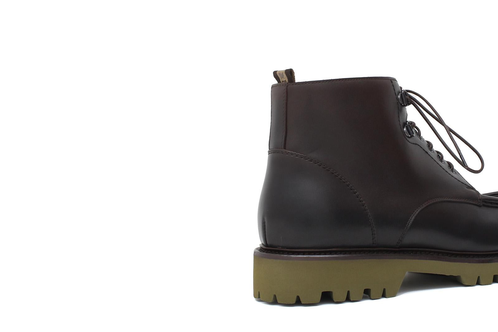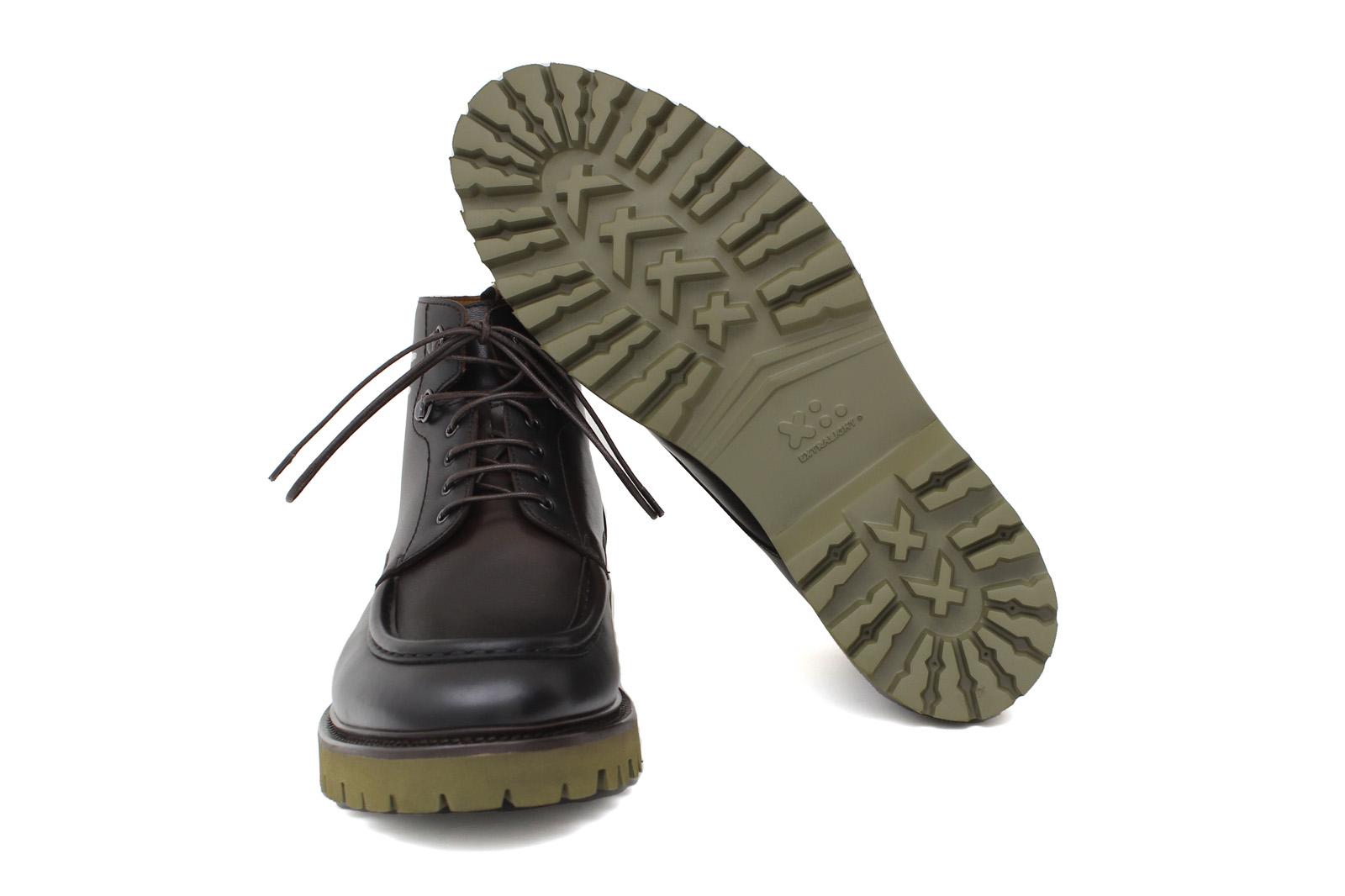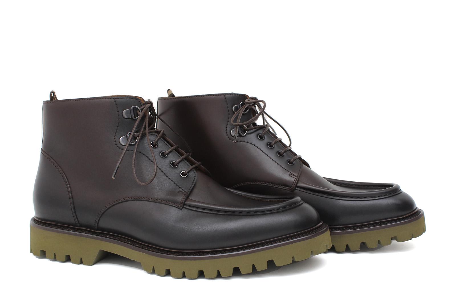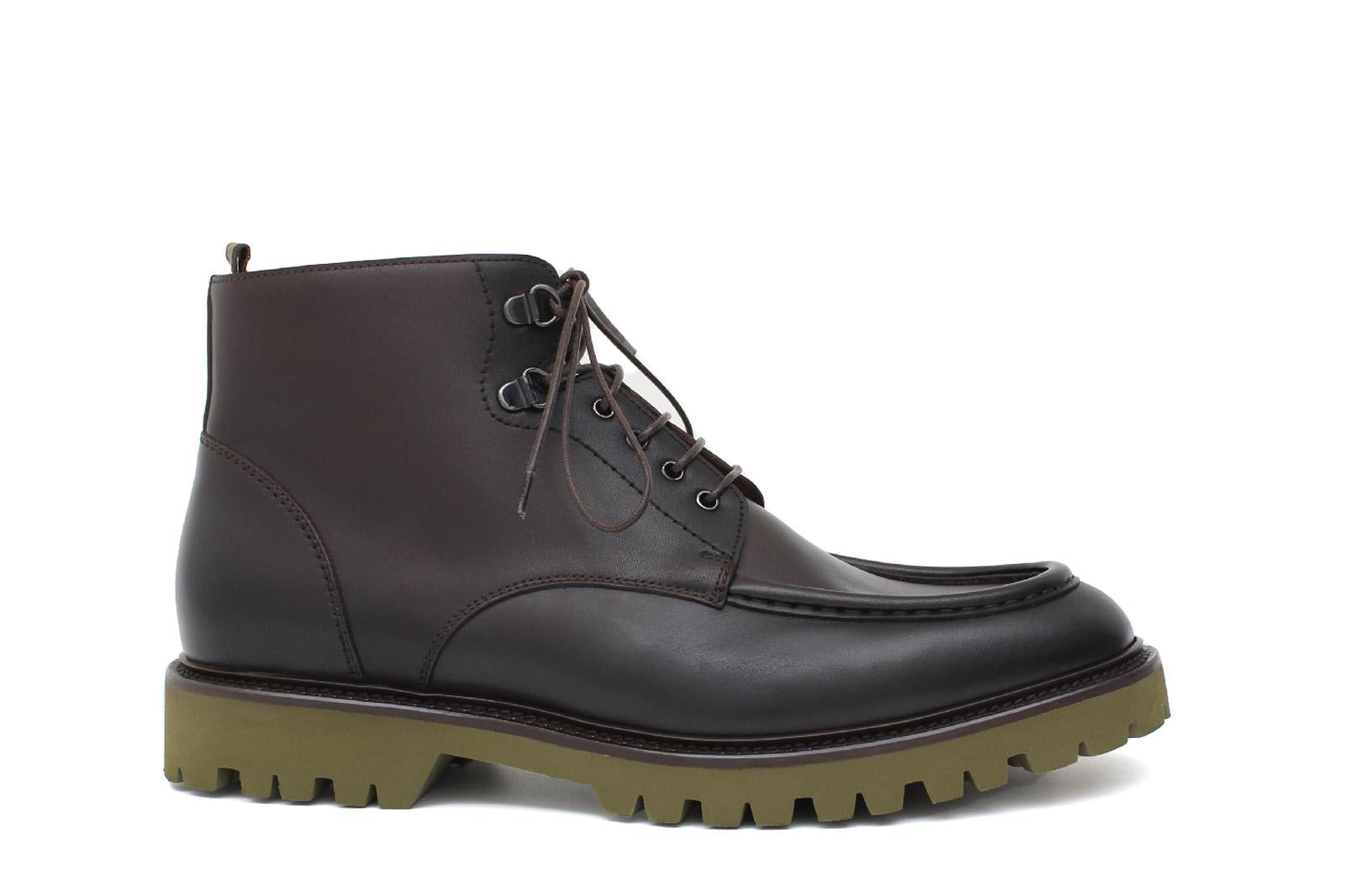 Lace-up ankle boot in dark brown antiqued calfskin with lightweight rubber sole