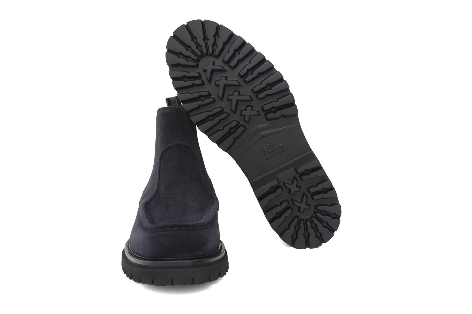 Beatles-style ankle boot in blue suede with lightweight rubber sole
