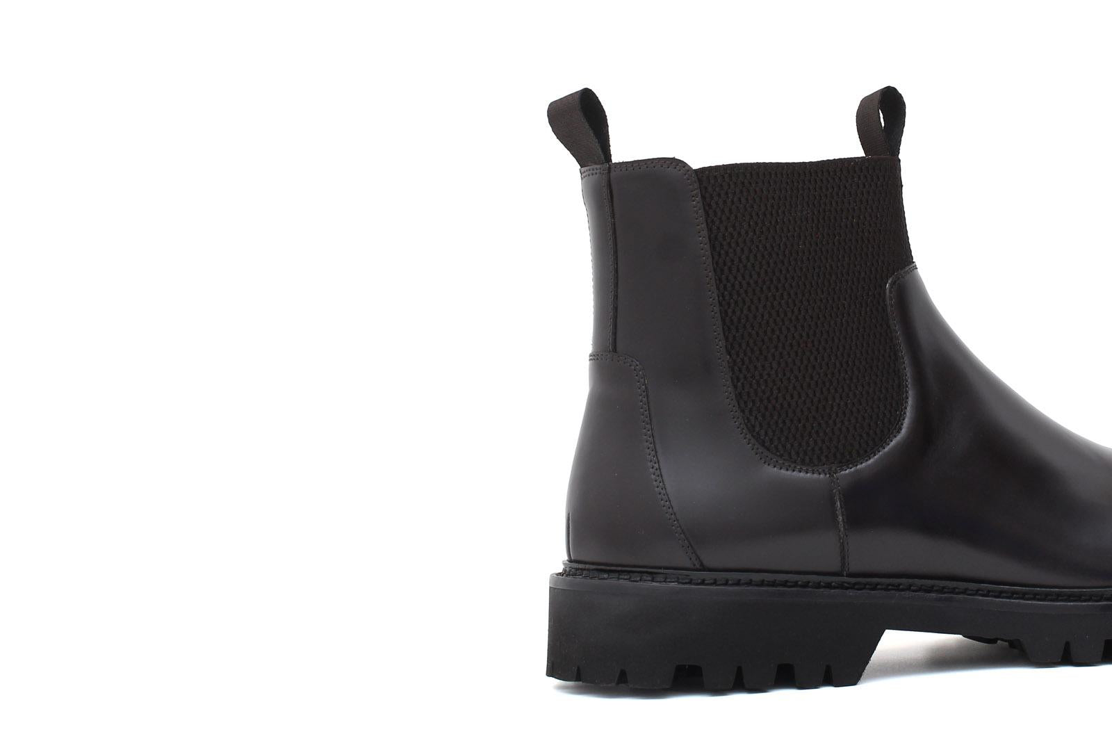 Chelsea boot in semi-gloss brushed calfskin in dark brown, lightweight and comfortable to wear, recommended for a neoclassical outfit to be used for any occasion.