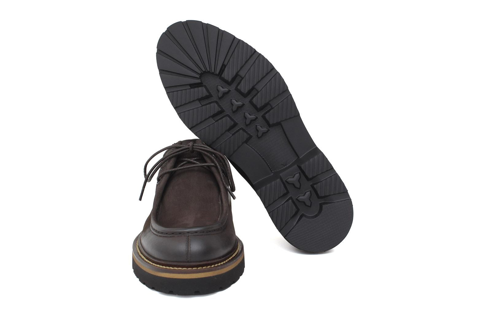 Engineer-style lace-up in dark brown nubuck calfskin and lightweight rubber sole