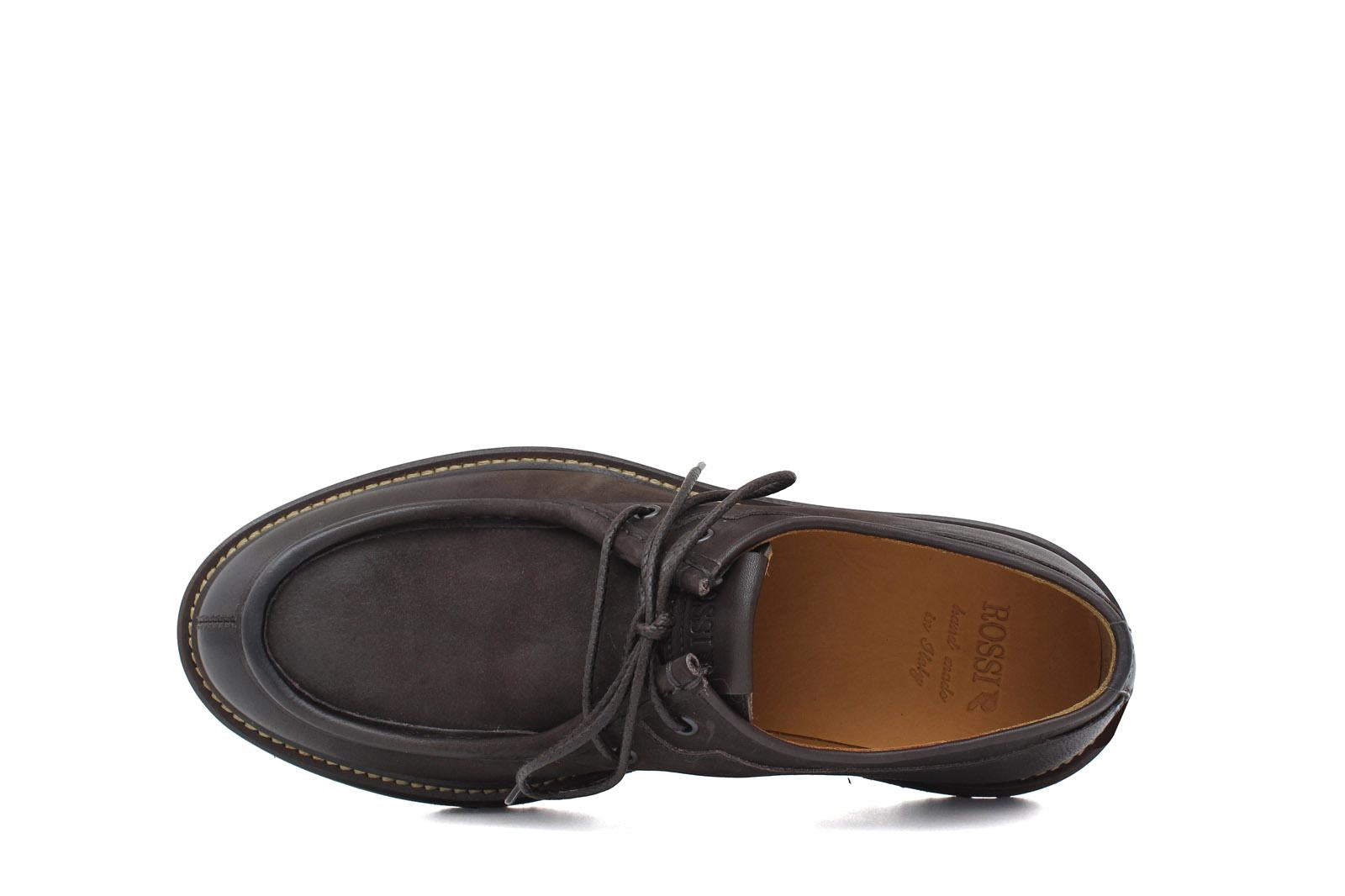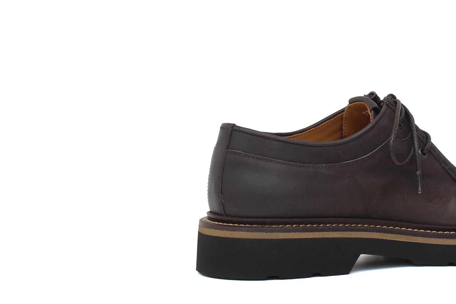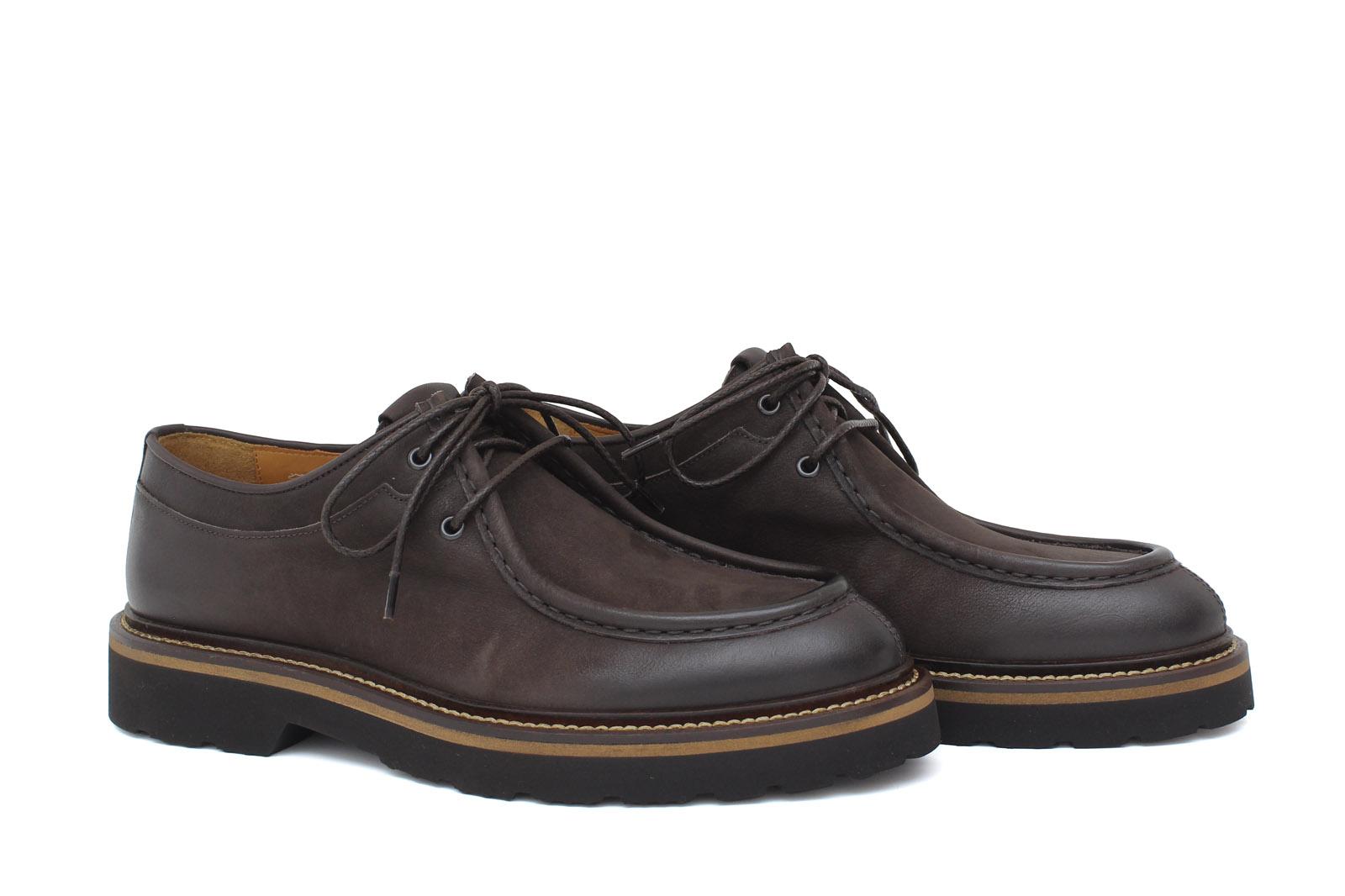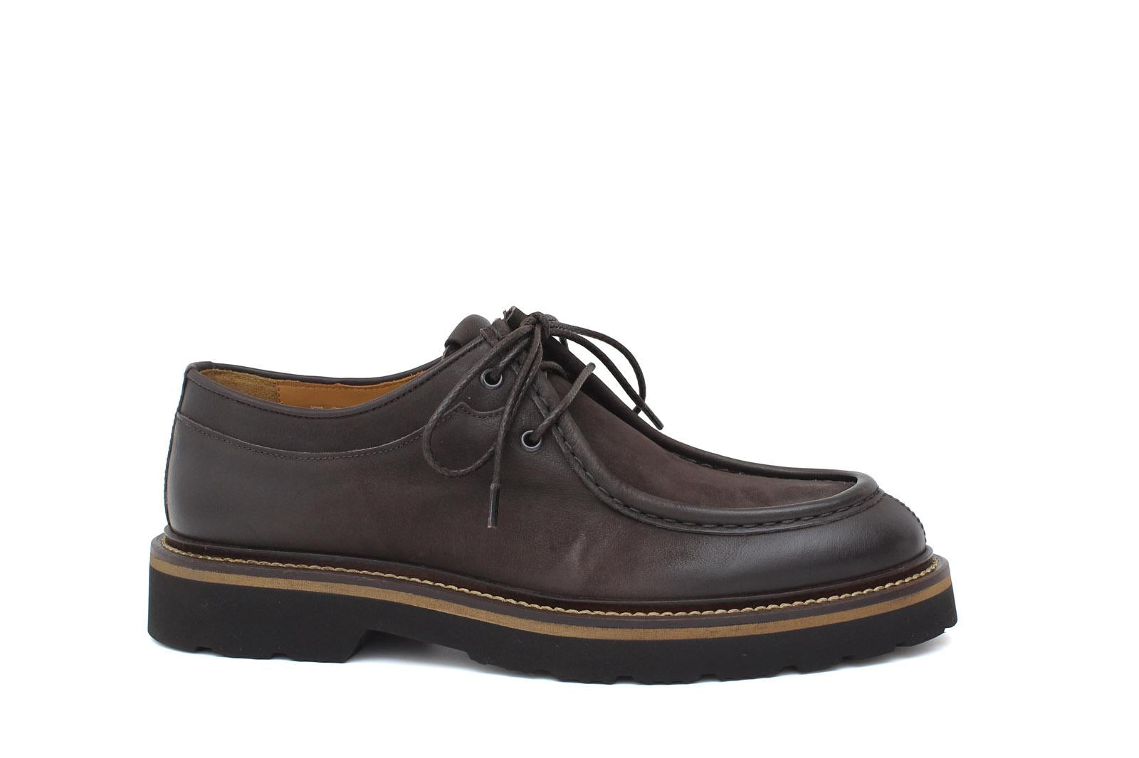 Engineer-style lace-up shoe in dark brown nubuck calfskin, comfortable and lightweight, recommended for an urban and informal outfit