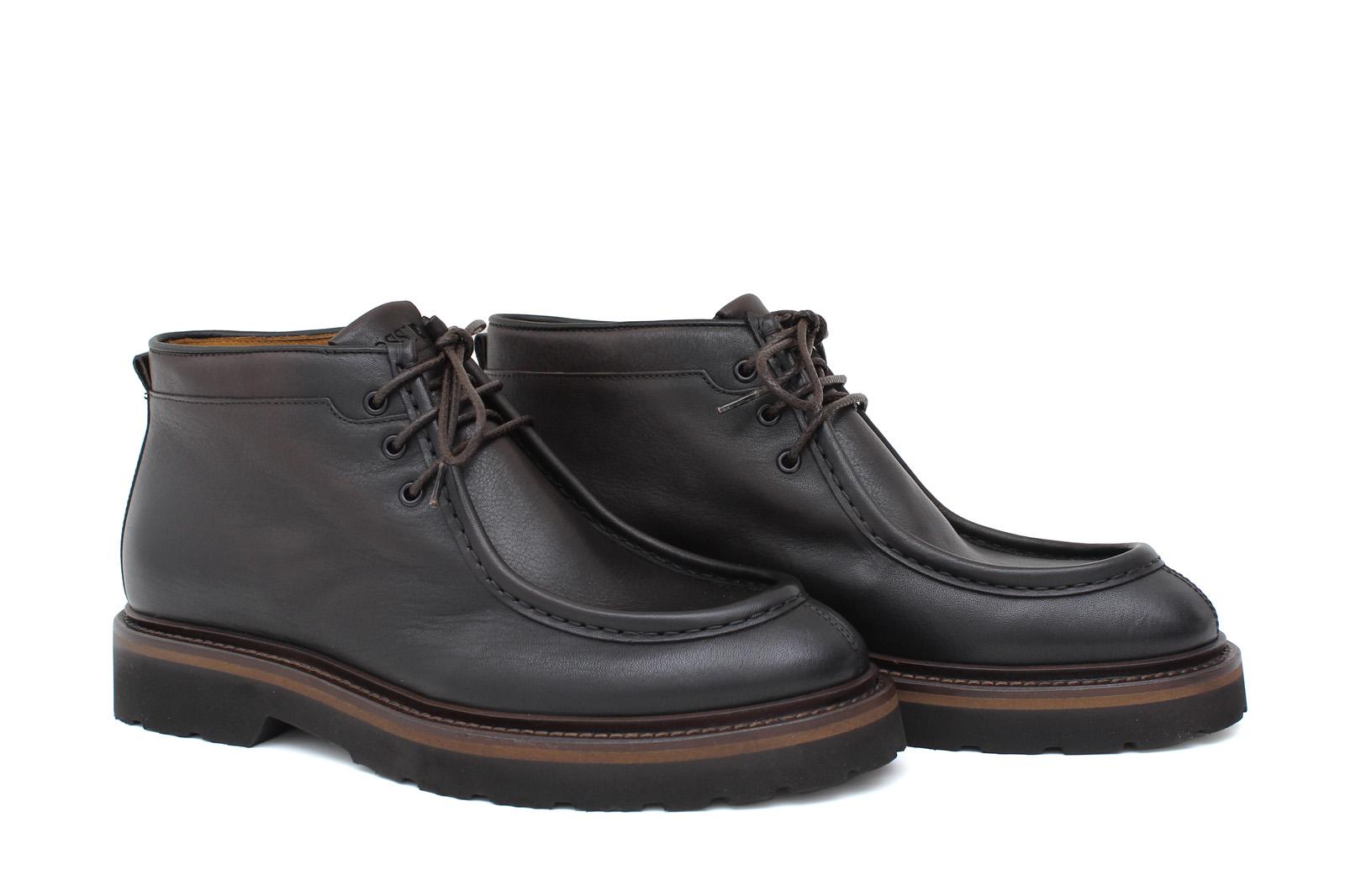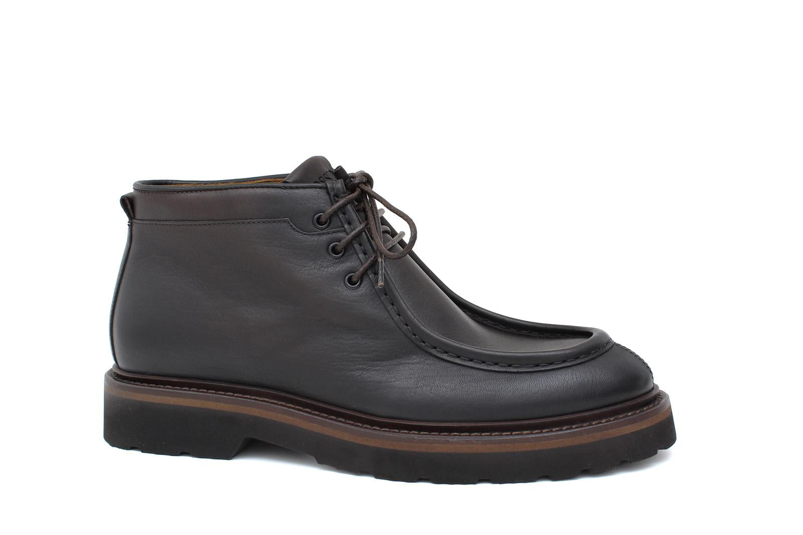 Polacchino stringato modello ingegnere in vitello nabuk anticato testa di moro con fondo in gomma leggera