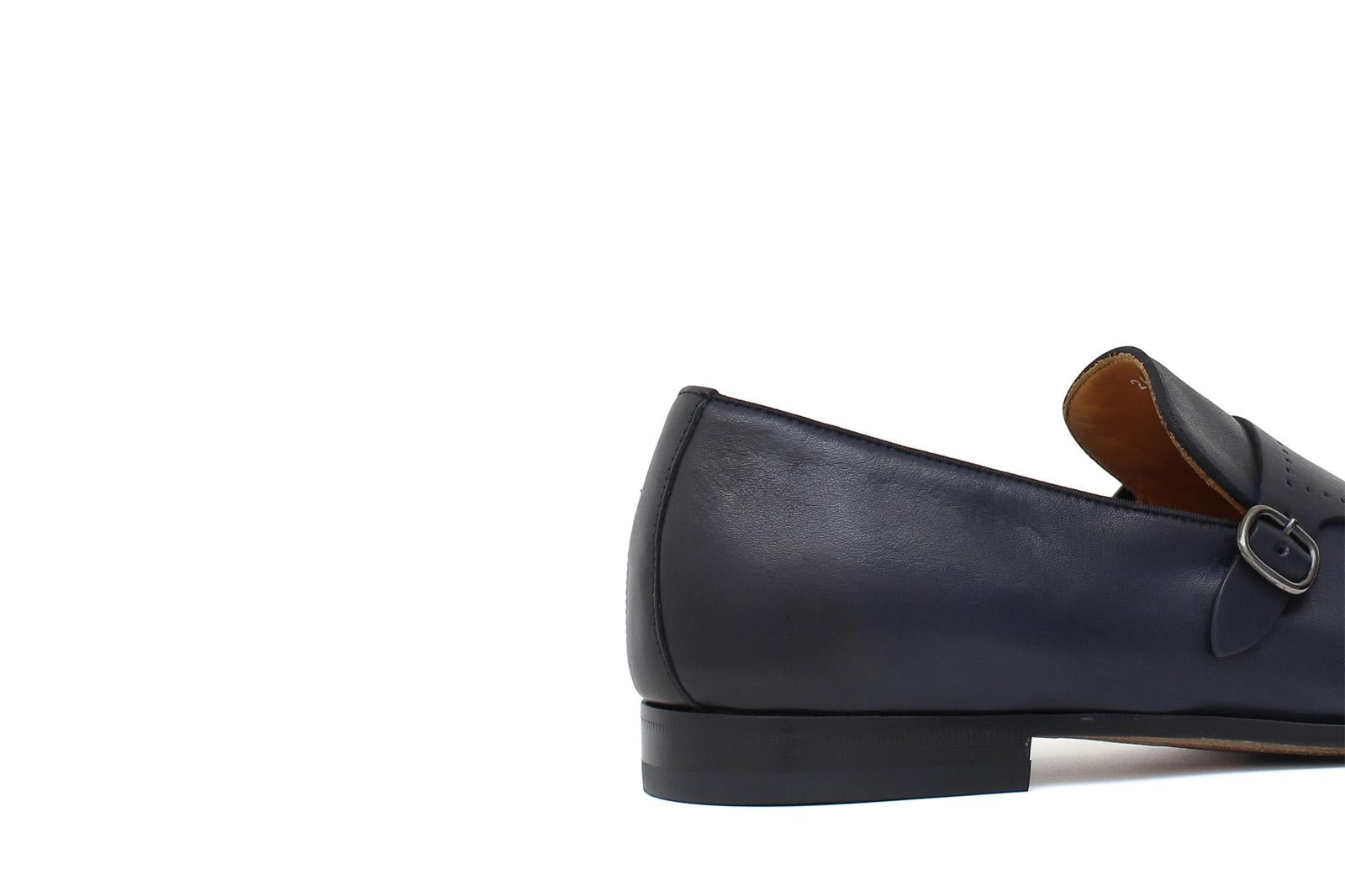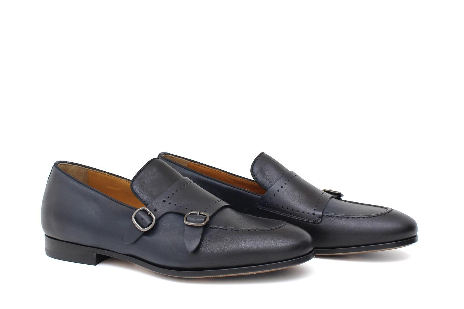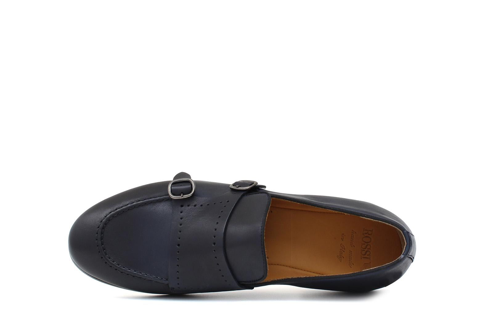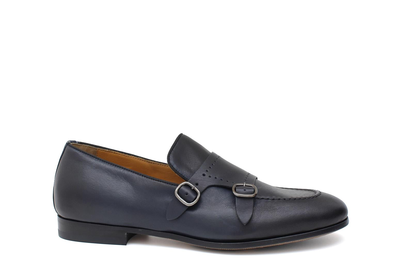 Doppia fibbia in vitello naturale blu sfumatoconsigliato per un outfit formale e giovanile. Flessibilità e confort rendono questa calzatura di alto livello