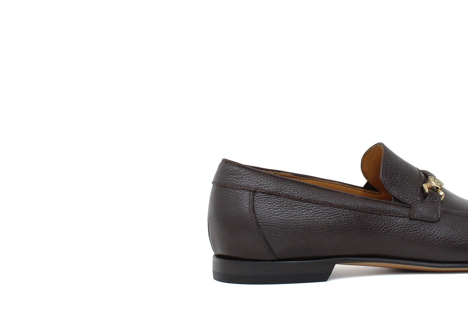 Mocassino in vitello dollaro testa di moro con fondo in cuoio antiscivolo