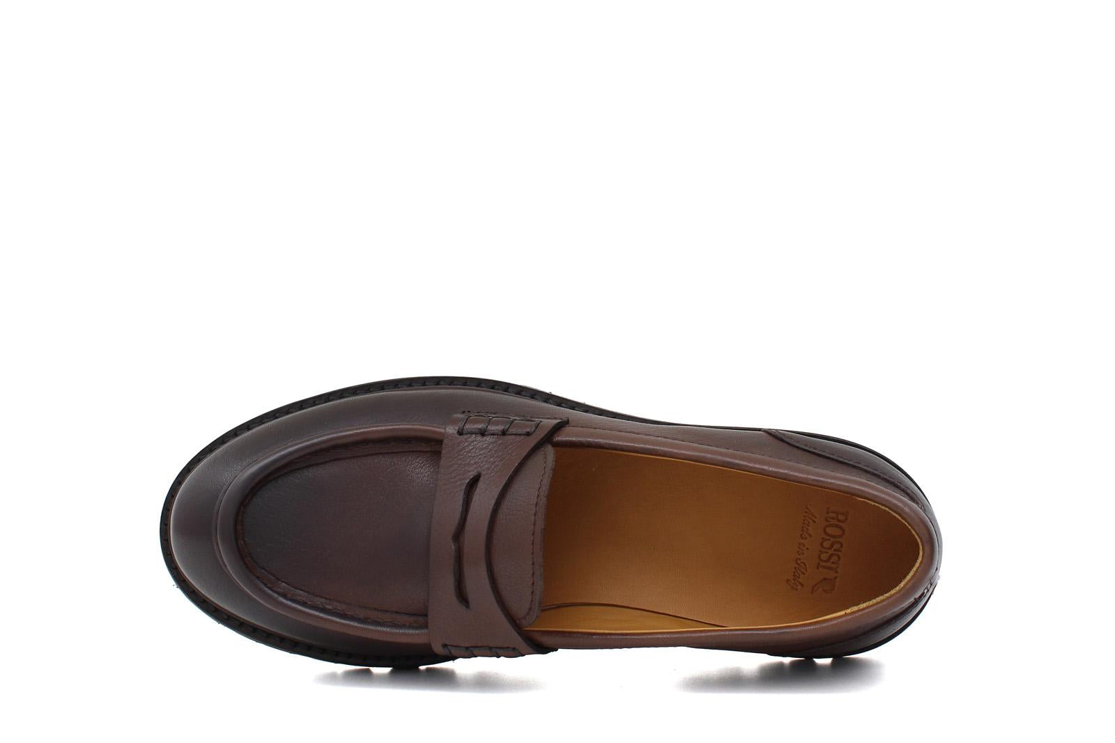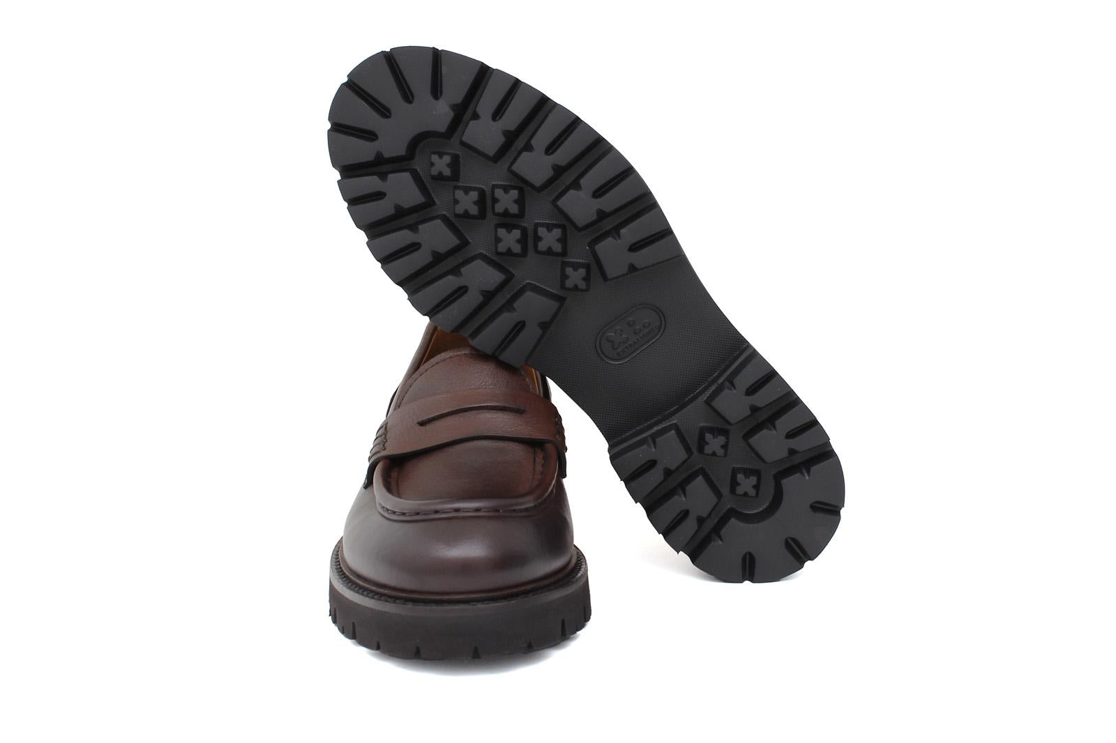 Mocassino donna stile ingegnere in vitello naturale marrone sfumato e fondo in gomma leggera