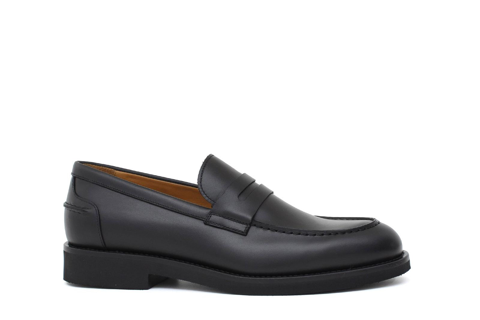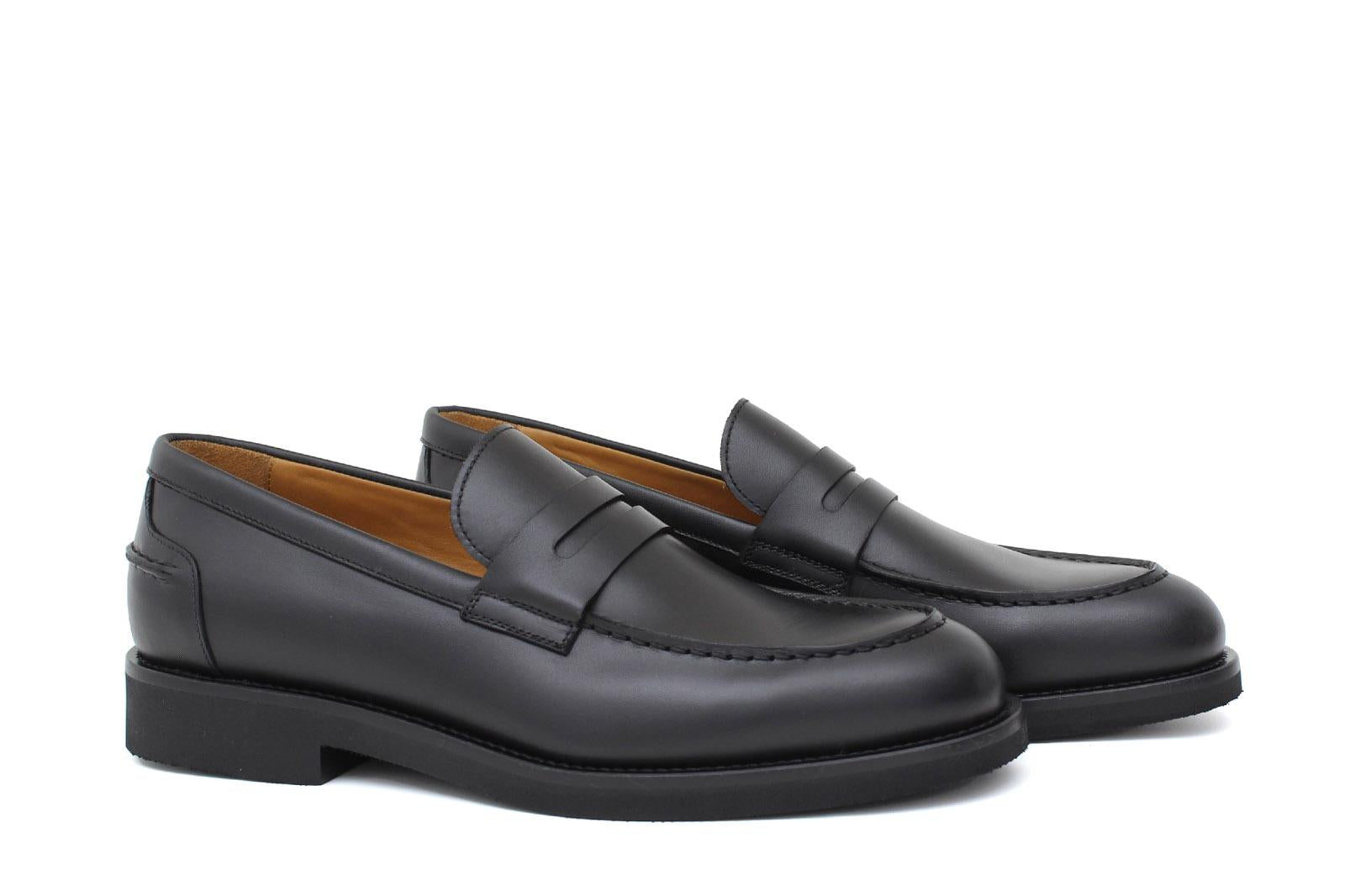 Mocassino in vitello a pieno fiore color nero con fondo in gomma leggera