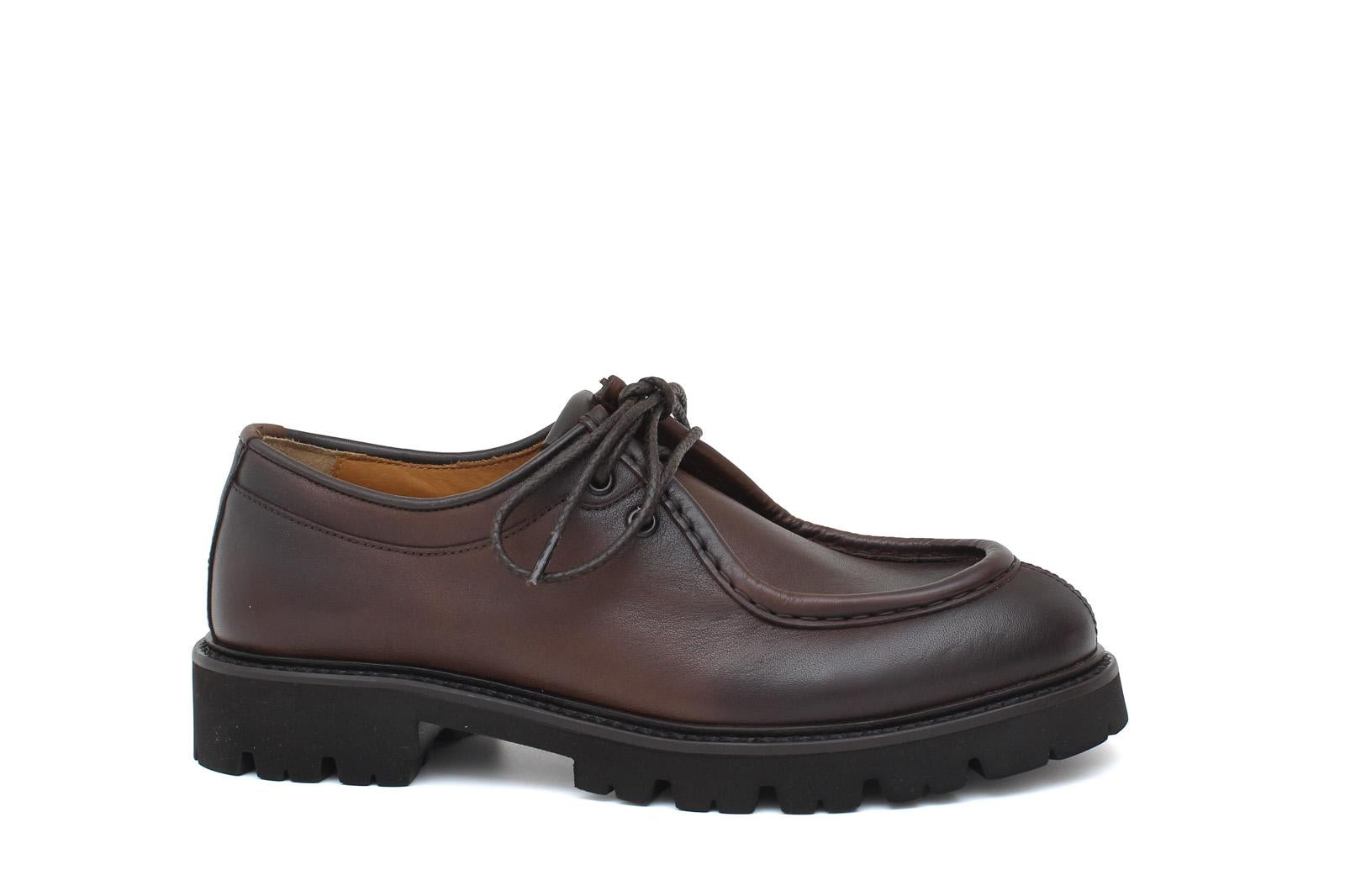 Stringata donna stile ingegnere in vitello morbido marrone sfumato con fondo in gomma leggera